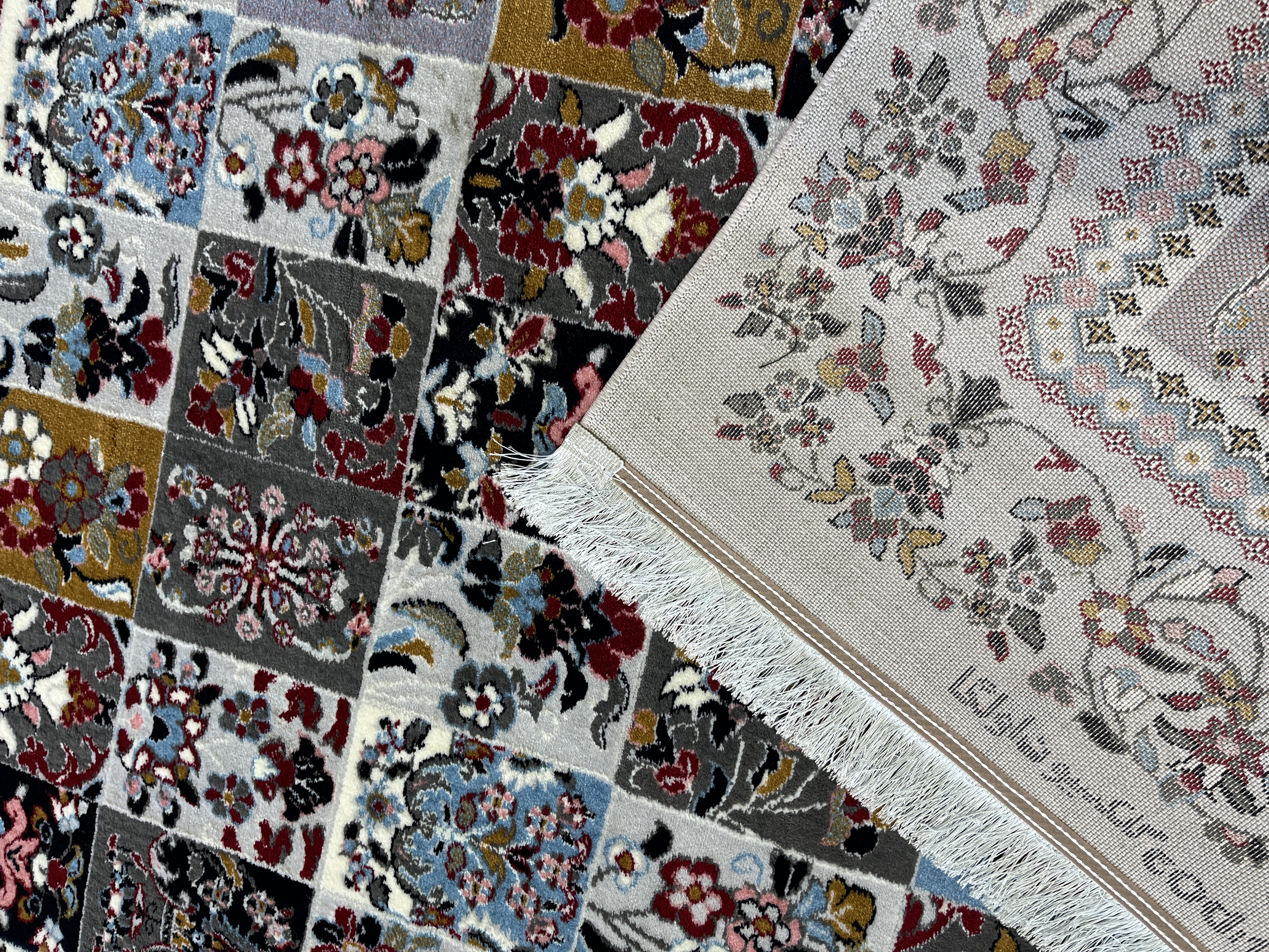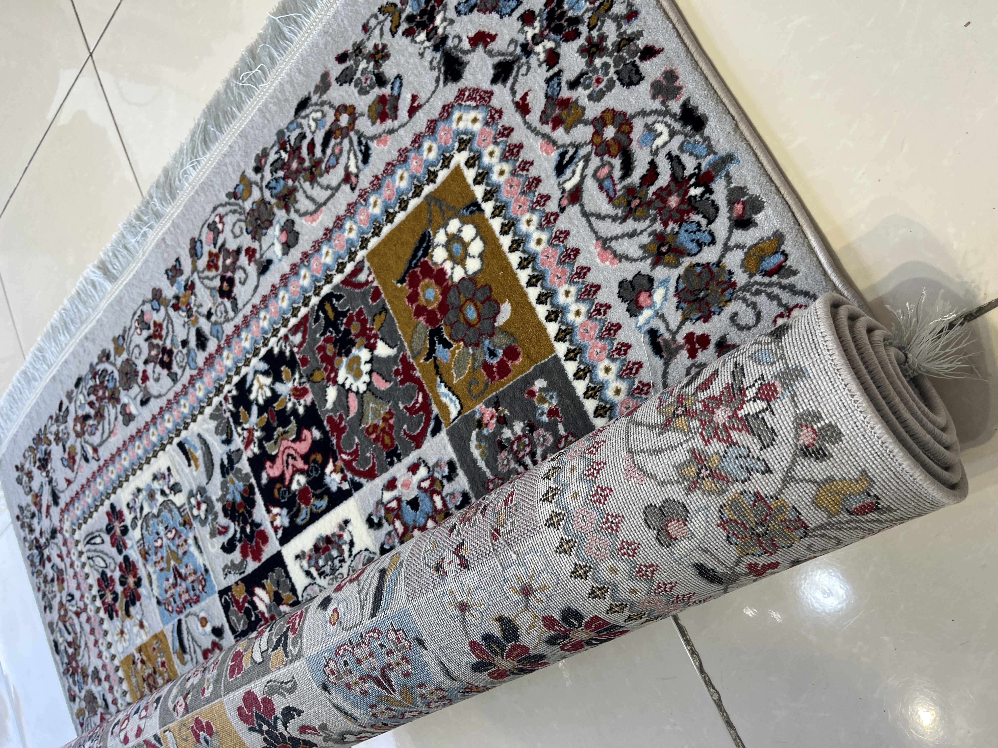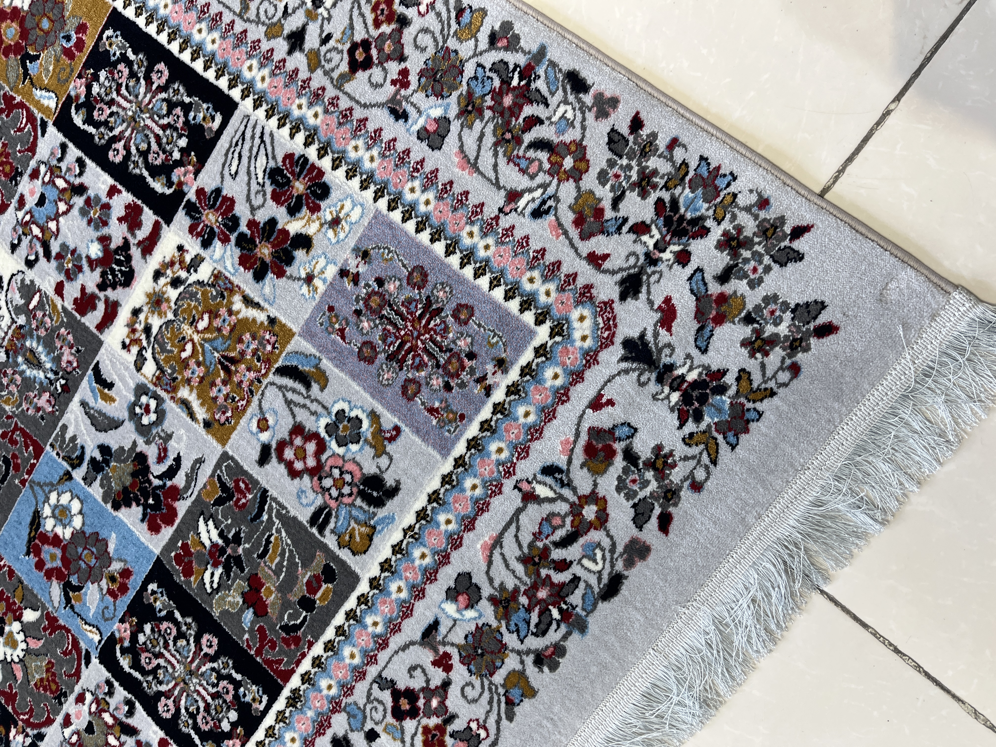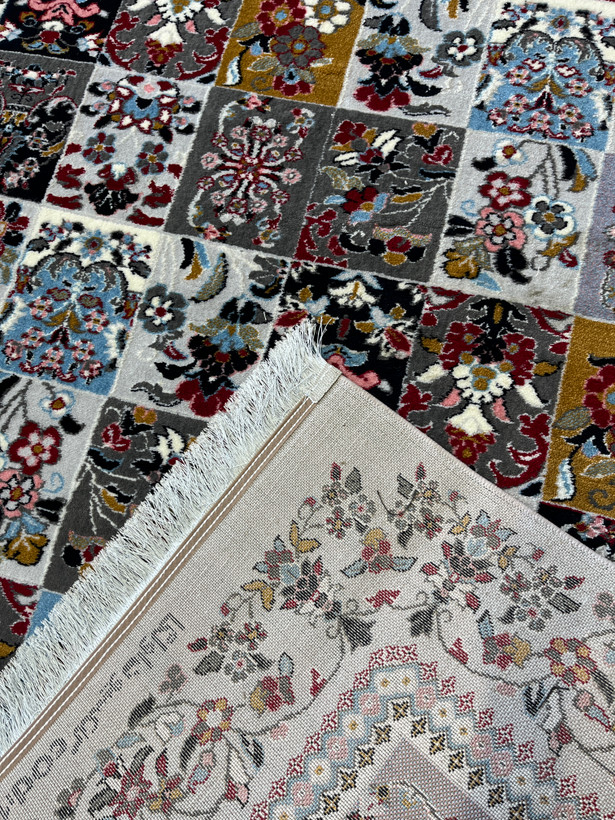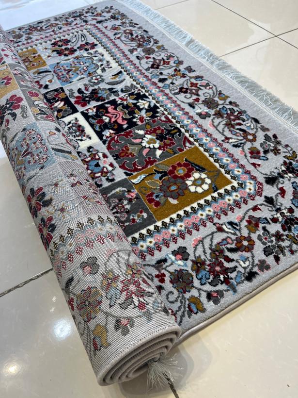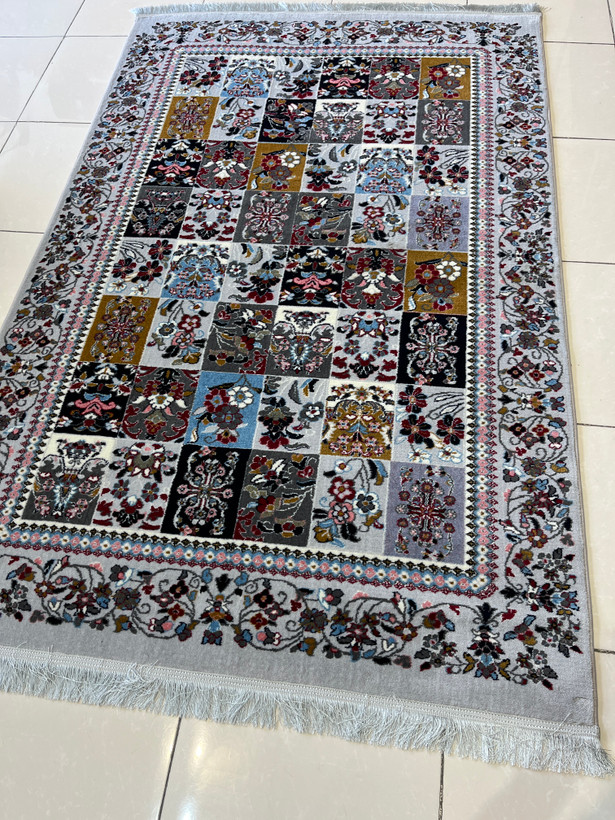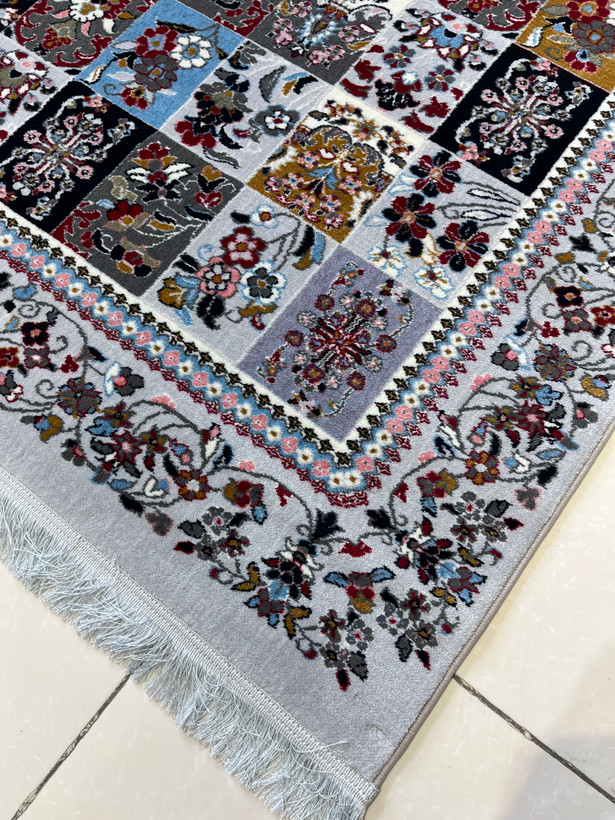 فرش 420 شانه طرح خشتی زمینه نقره ای کد 1001