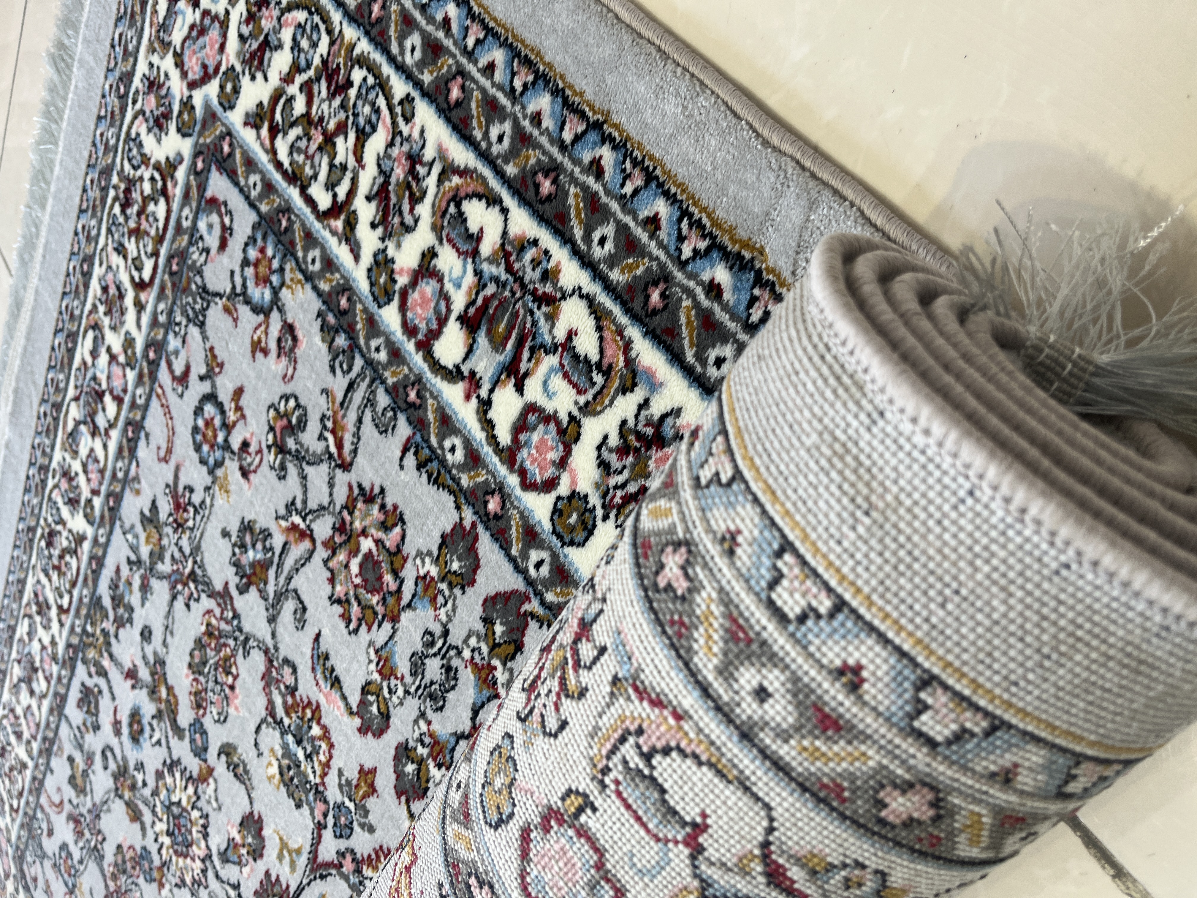 فرش 420 شانه طرح افشان زمینه نقره ای کد 1002