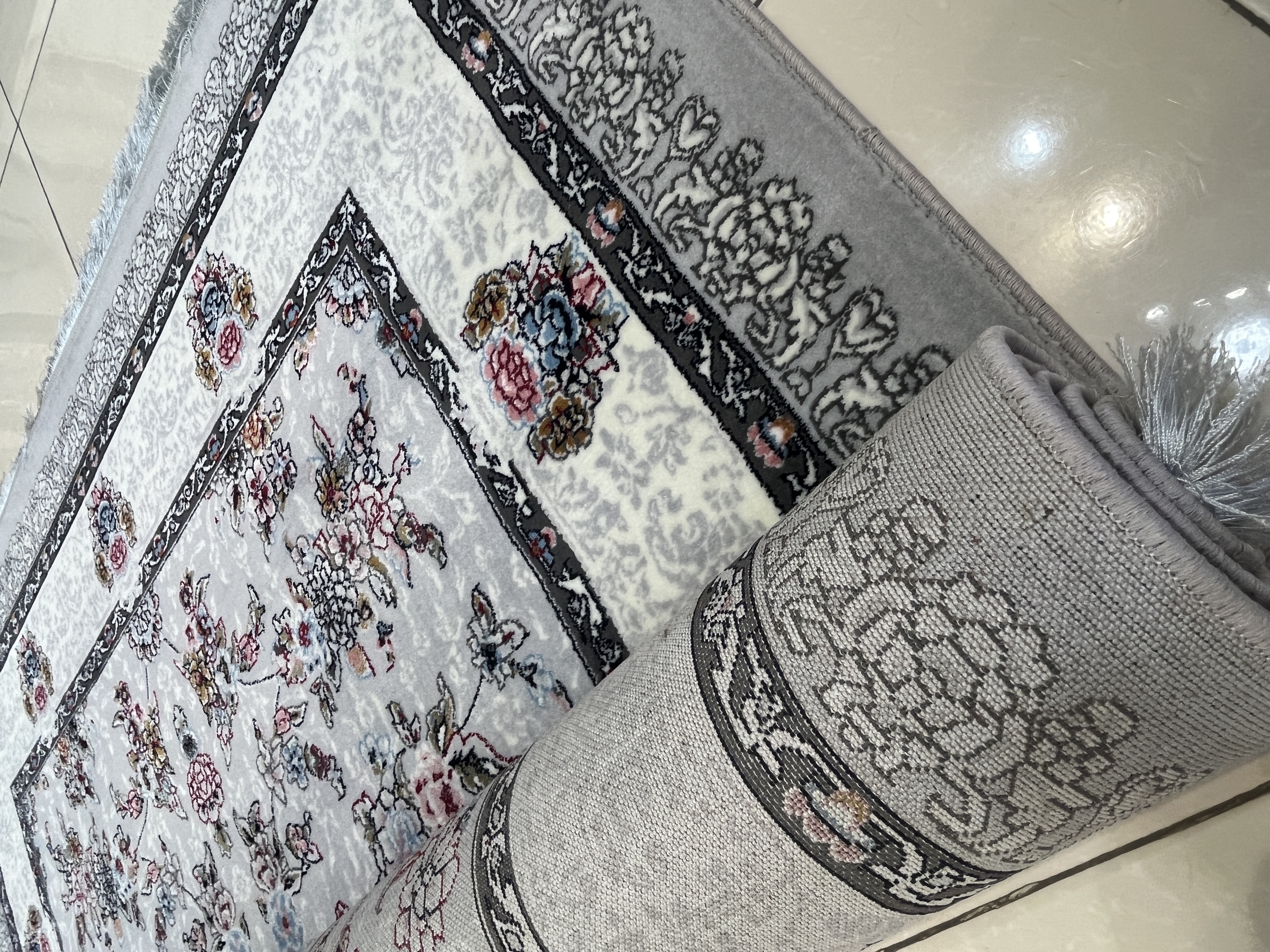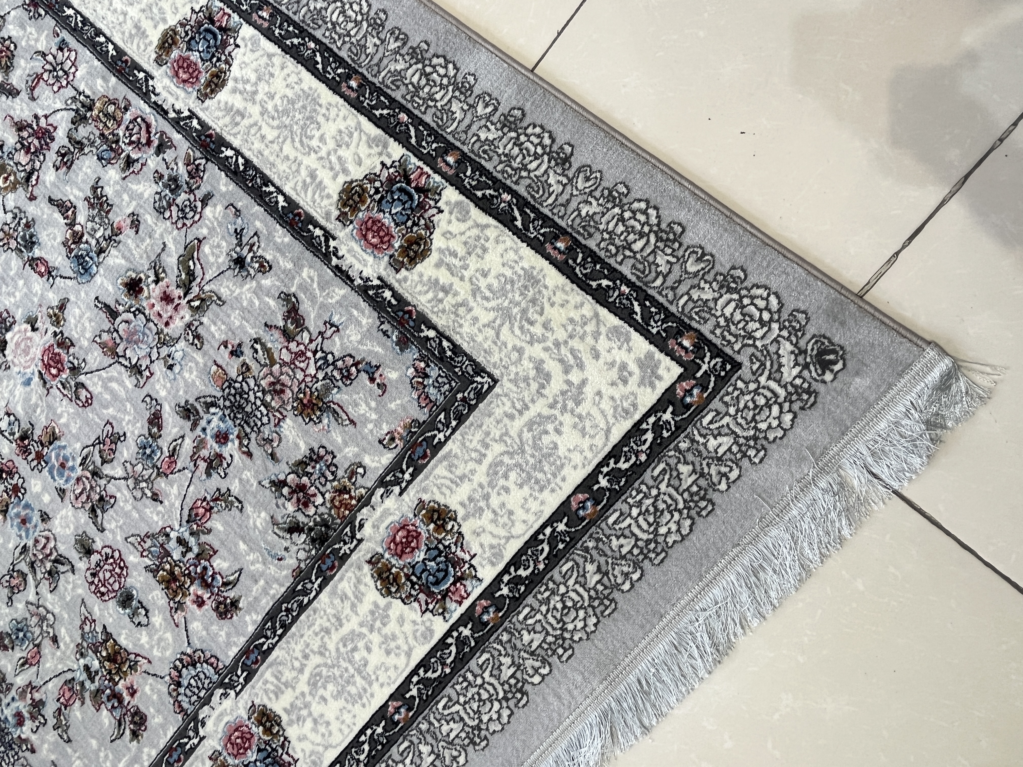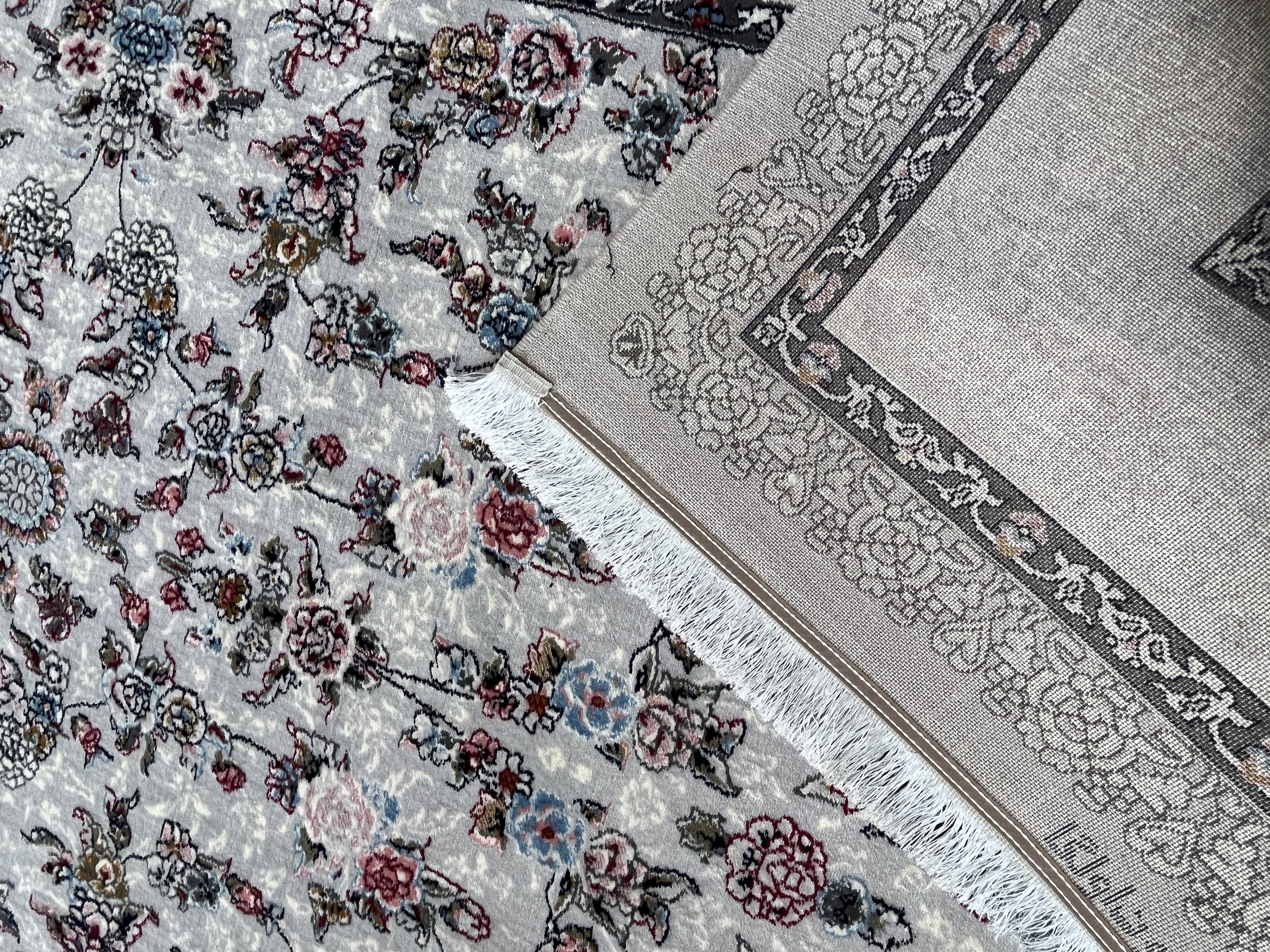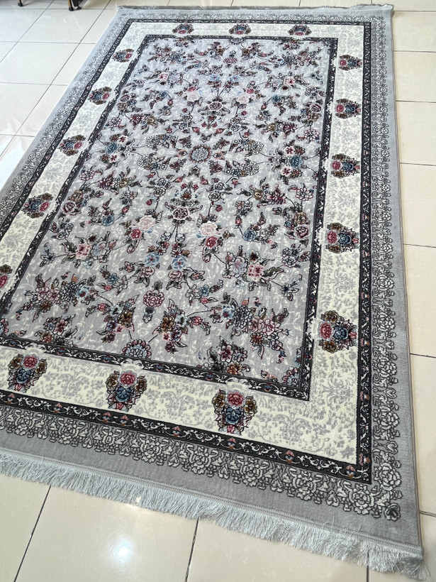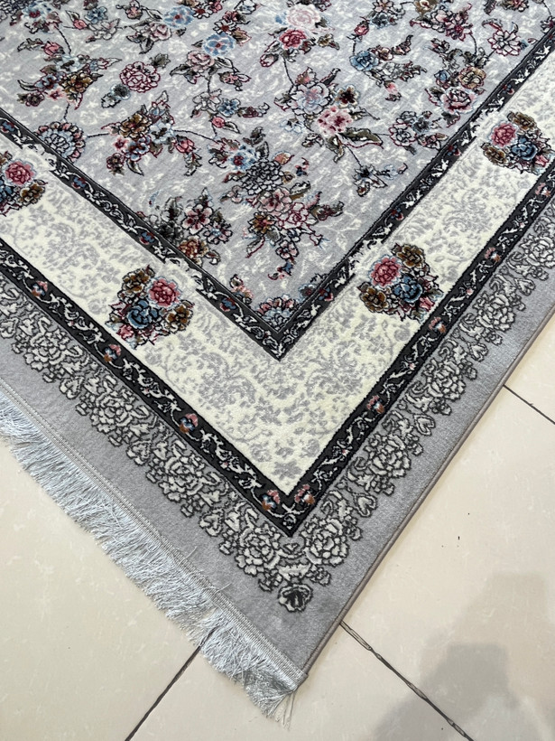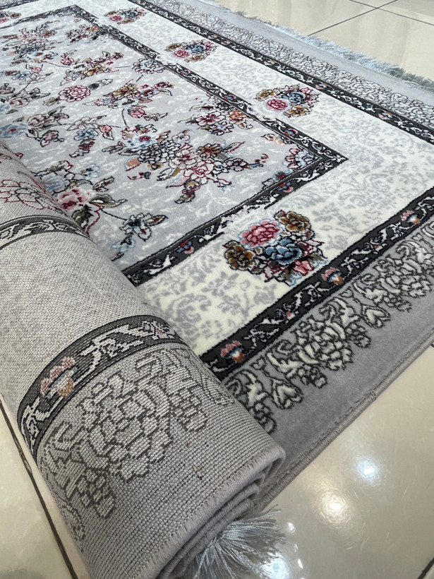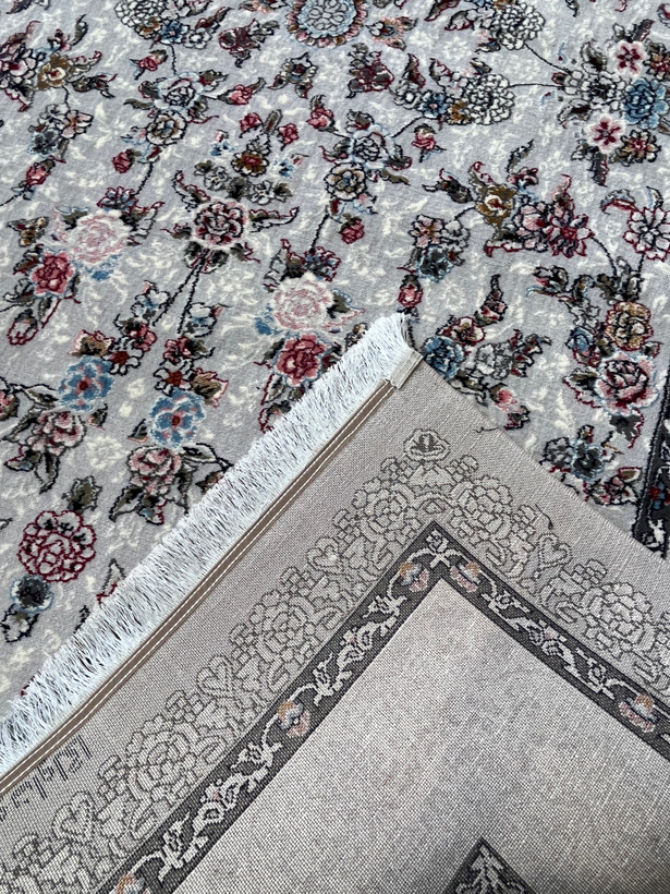 فرش 420 شانه کاشان زمینه نقره ای طرح افشان کد 1011