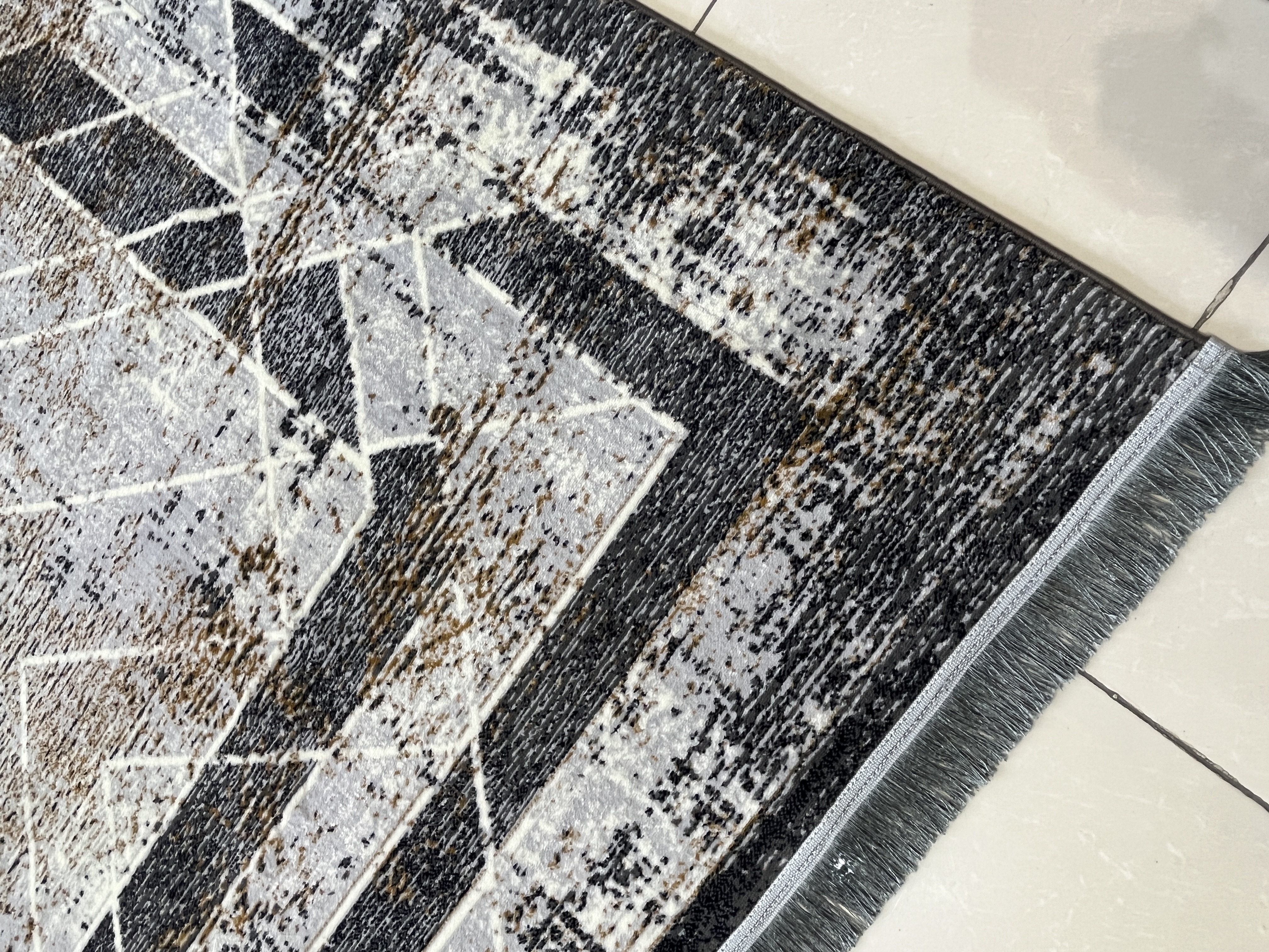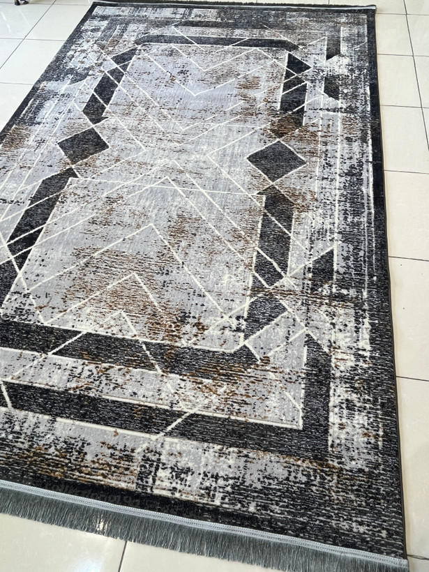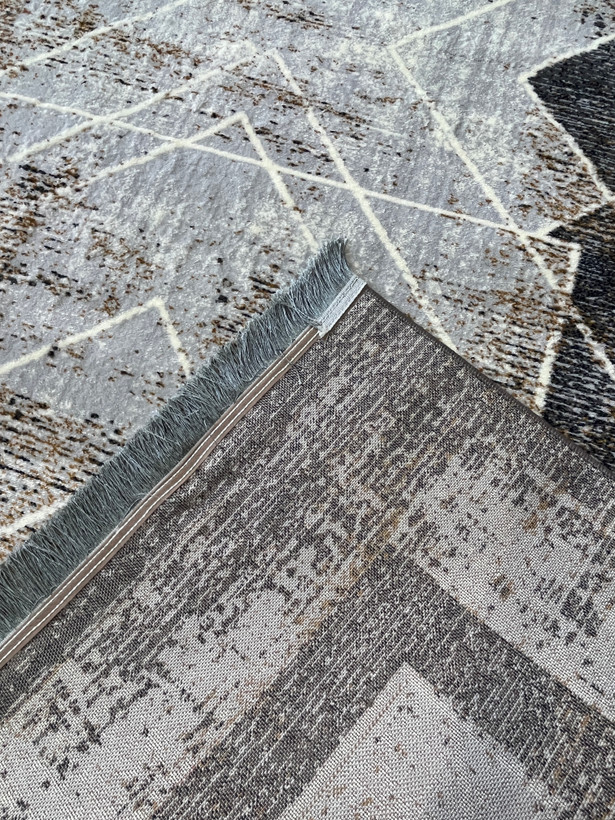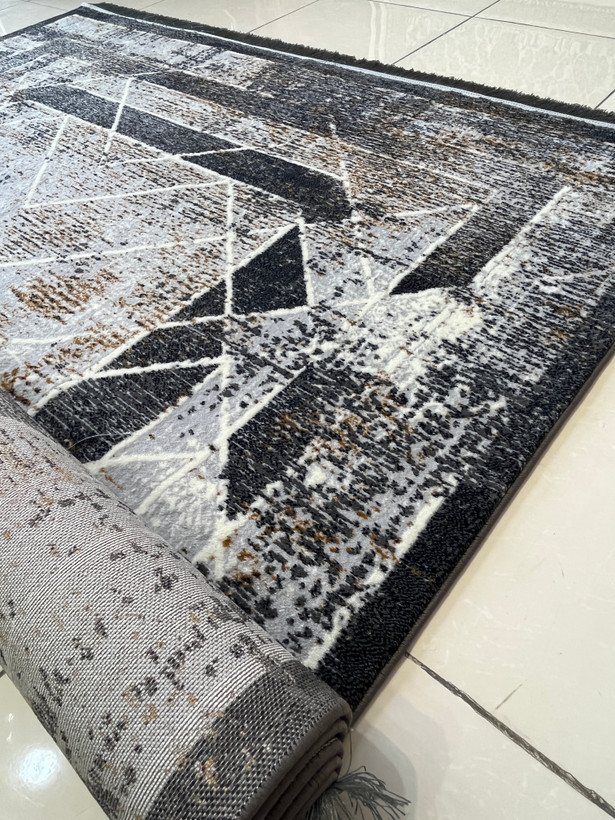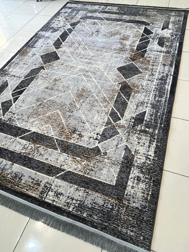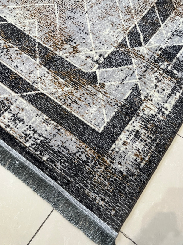 فرش ماشینی 420 شانه زمینه نقره ای طرح مدرن و مینیمال کد 1013