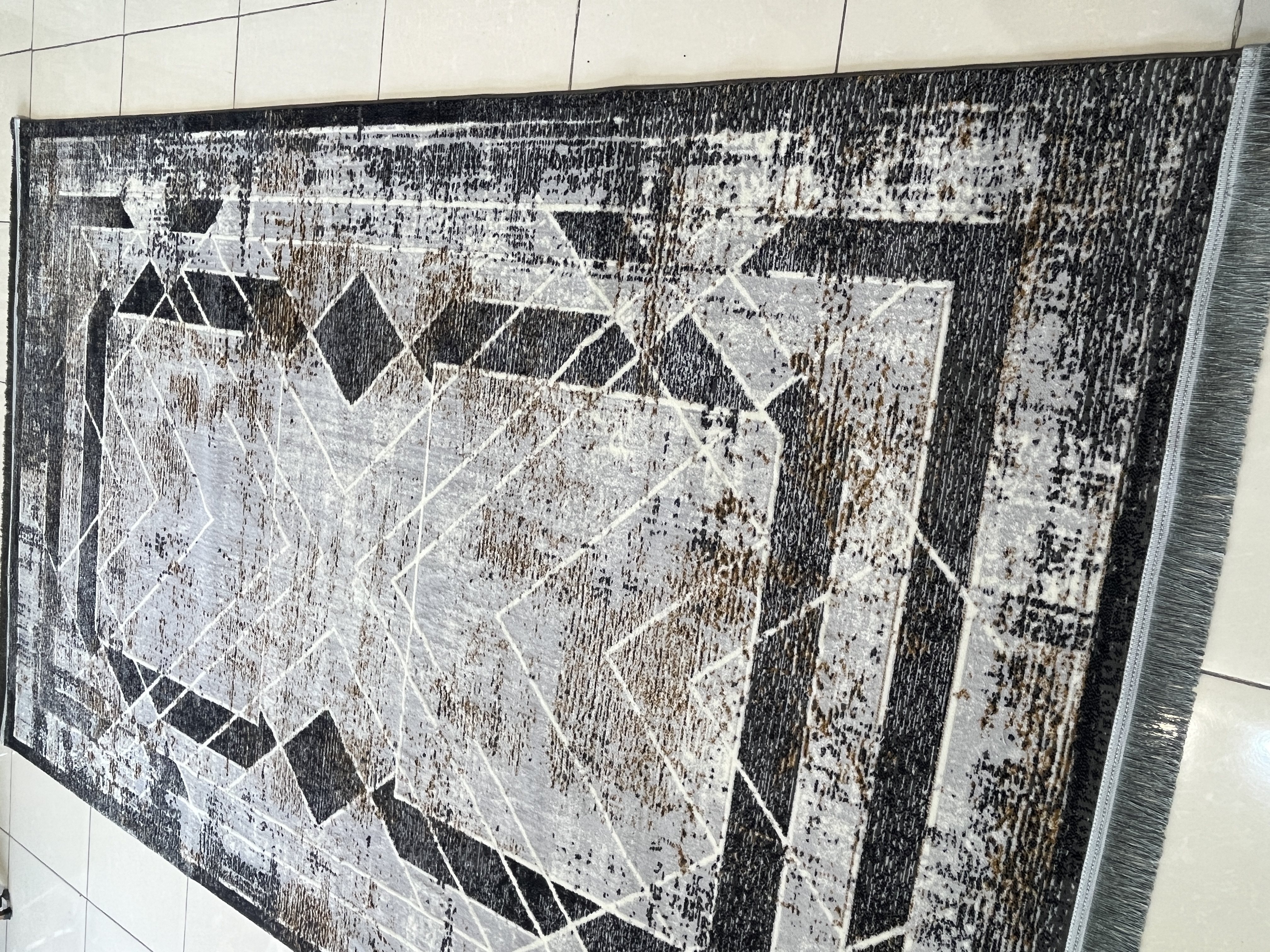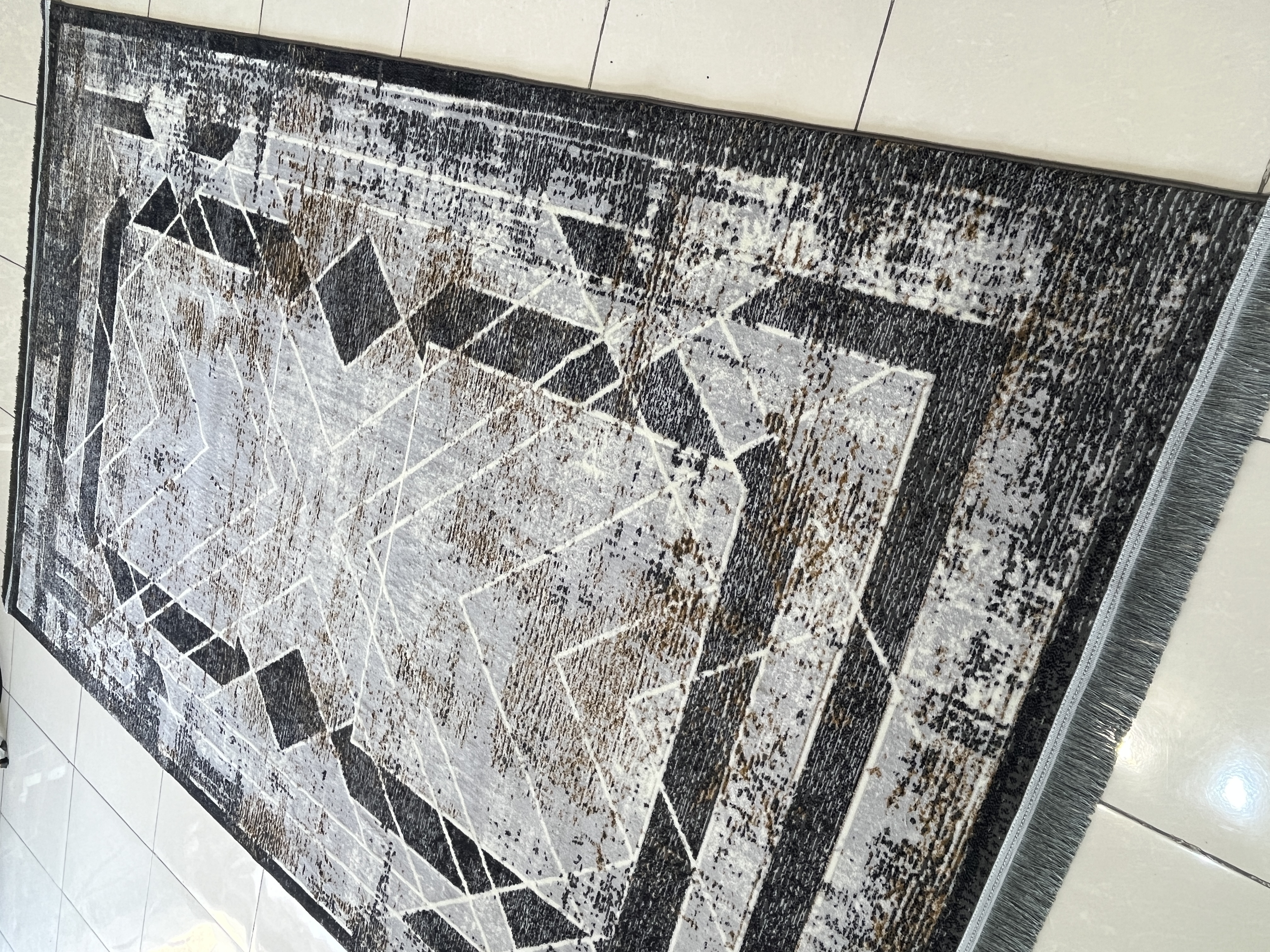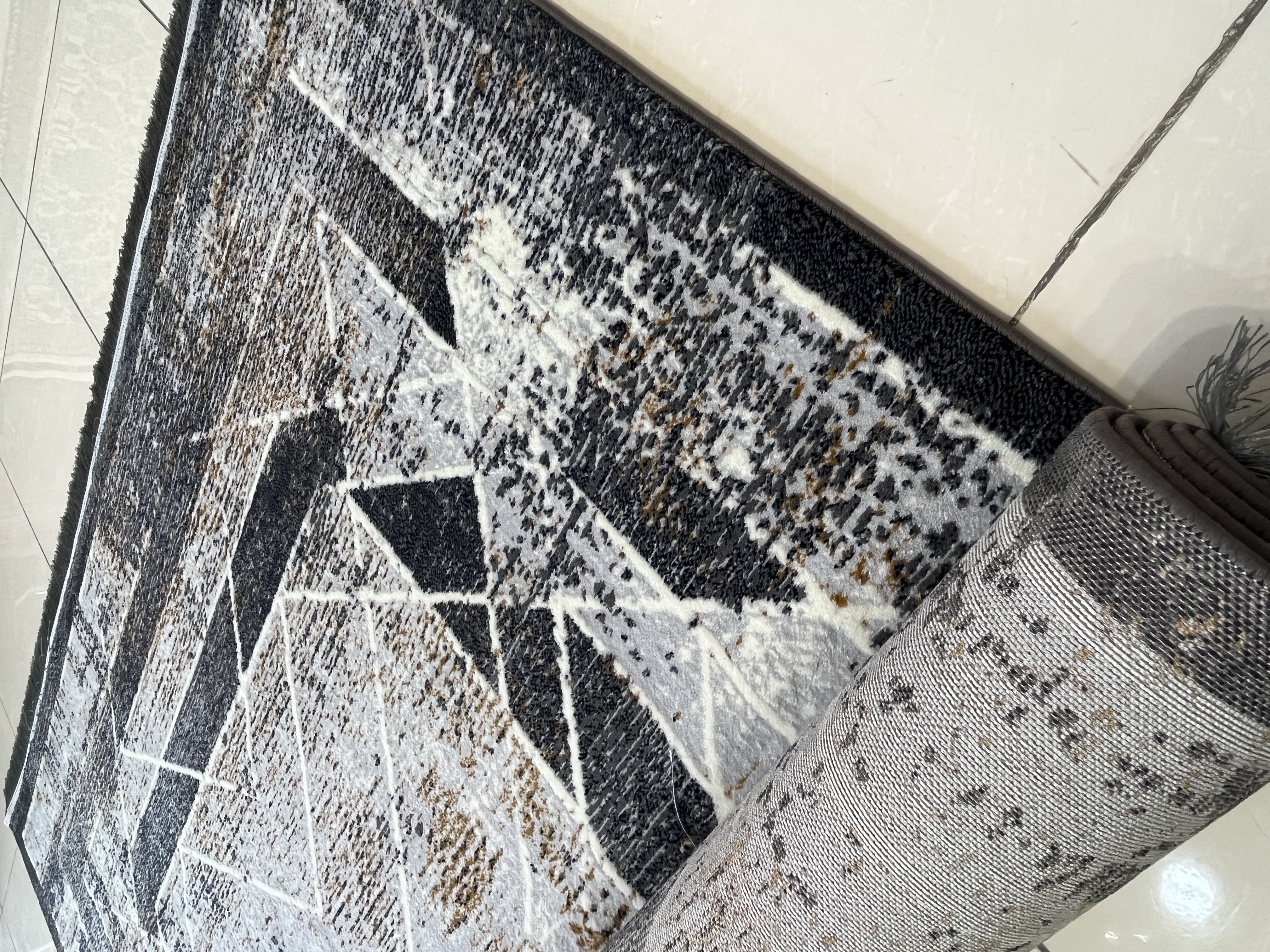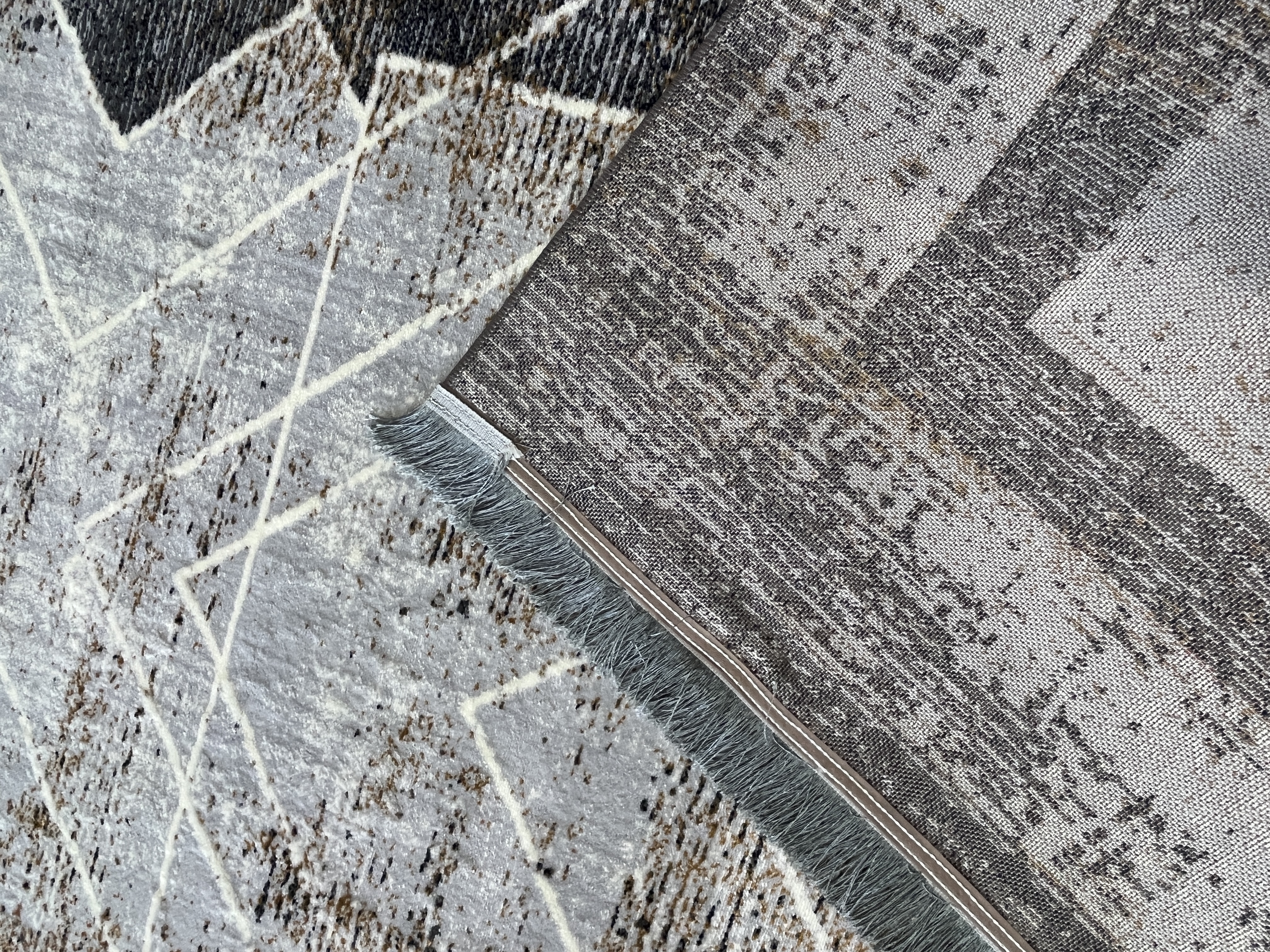 فرش ماشینی 420 شانه زمینه نقره ای طرح مدرن و مینیمال کد 1013