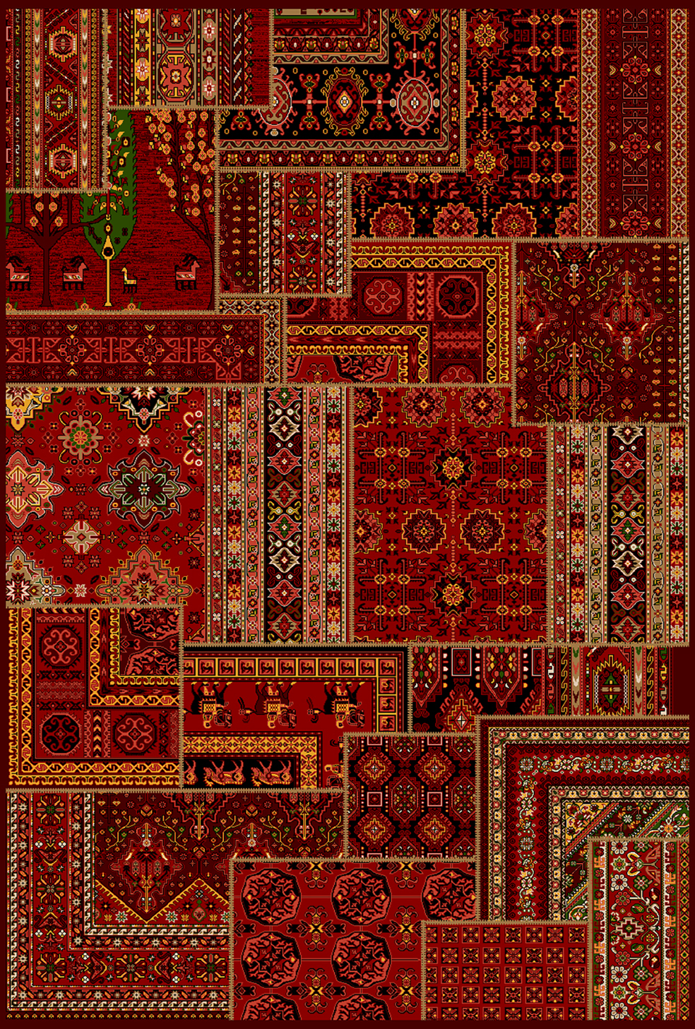 فرش ماشینی کاشان گبه سنتی زمینه لاکی کد طرح 4109