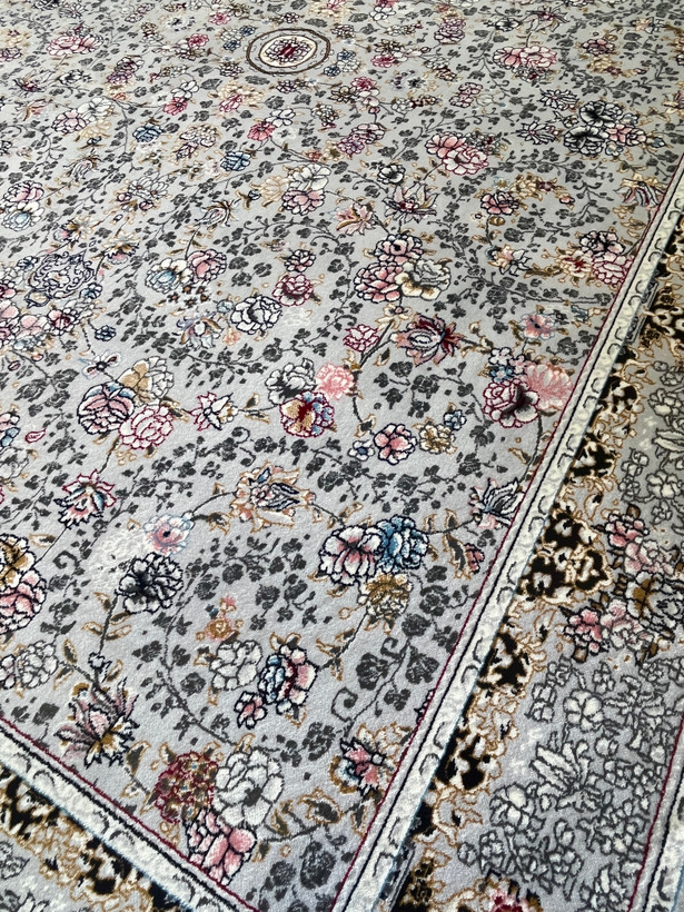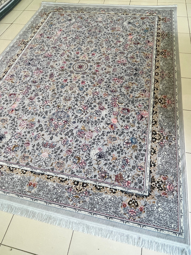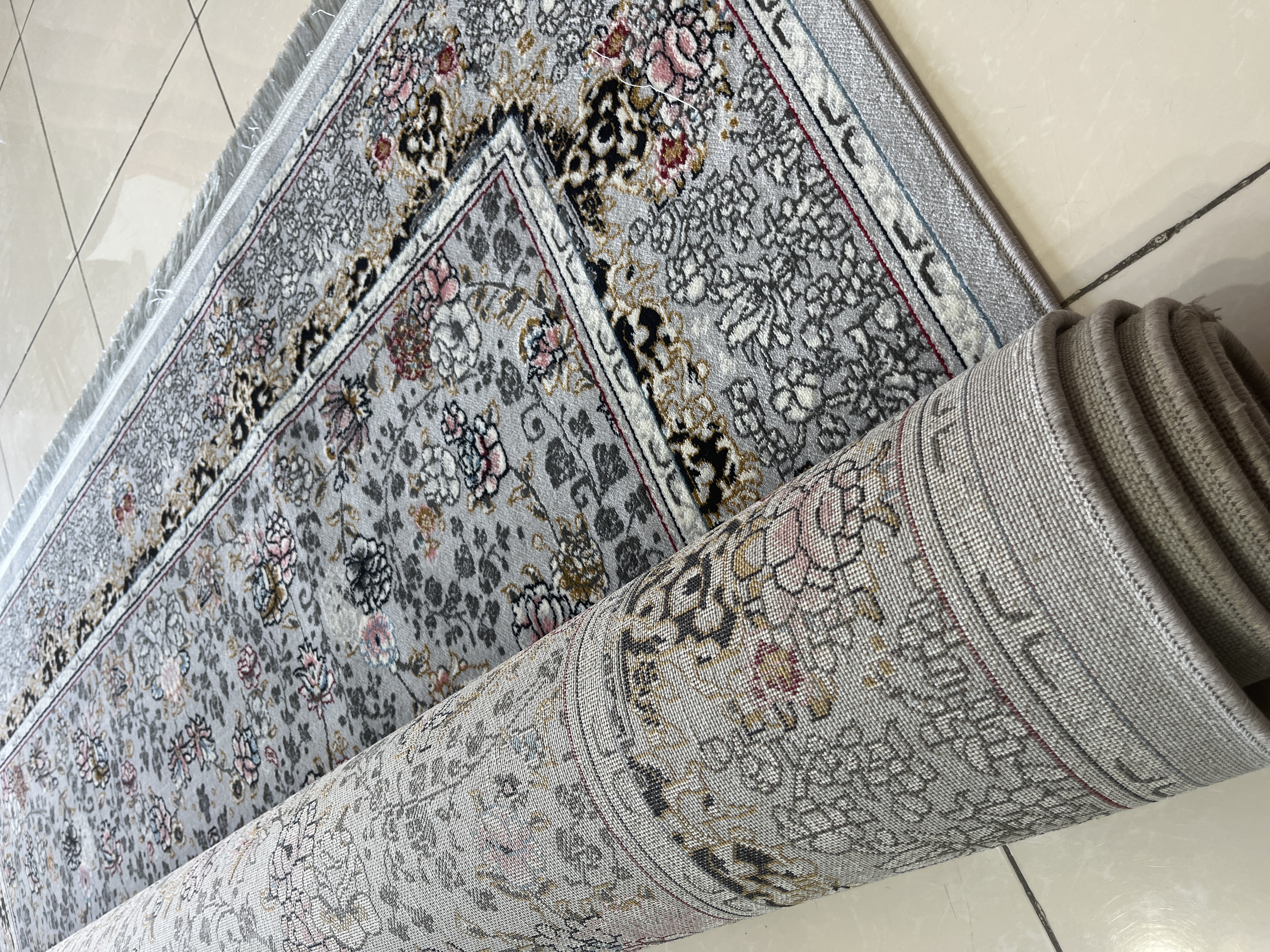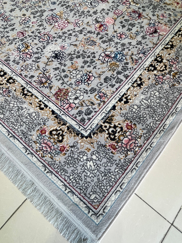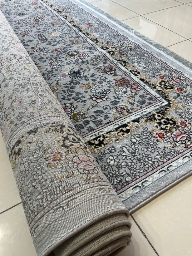 فرش ماشینی گبه 420 شانه زمینه نقره ای کد 1016