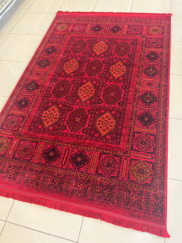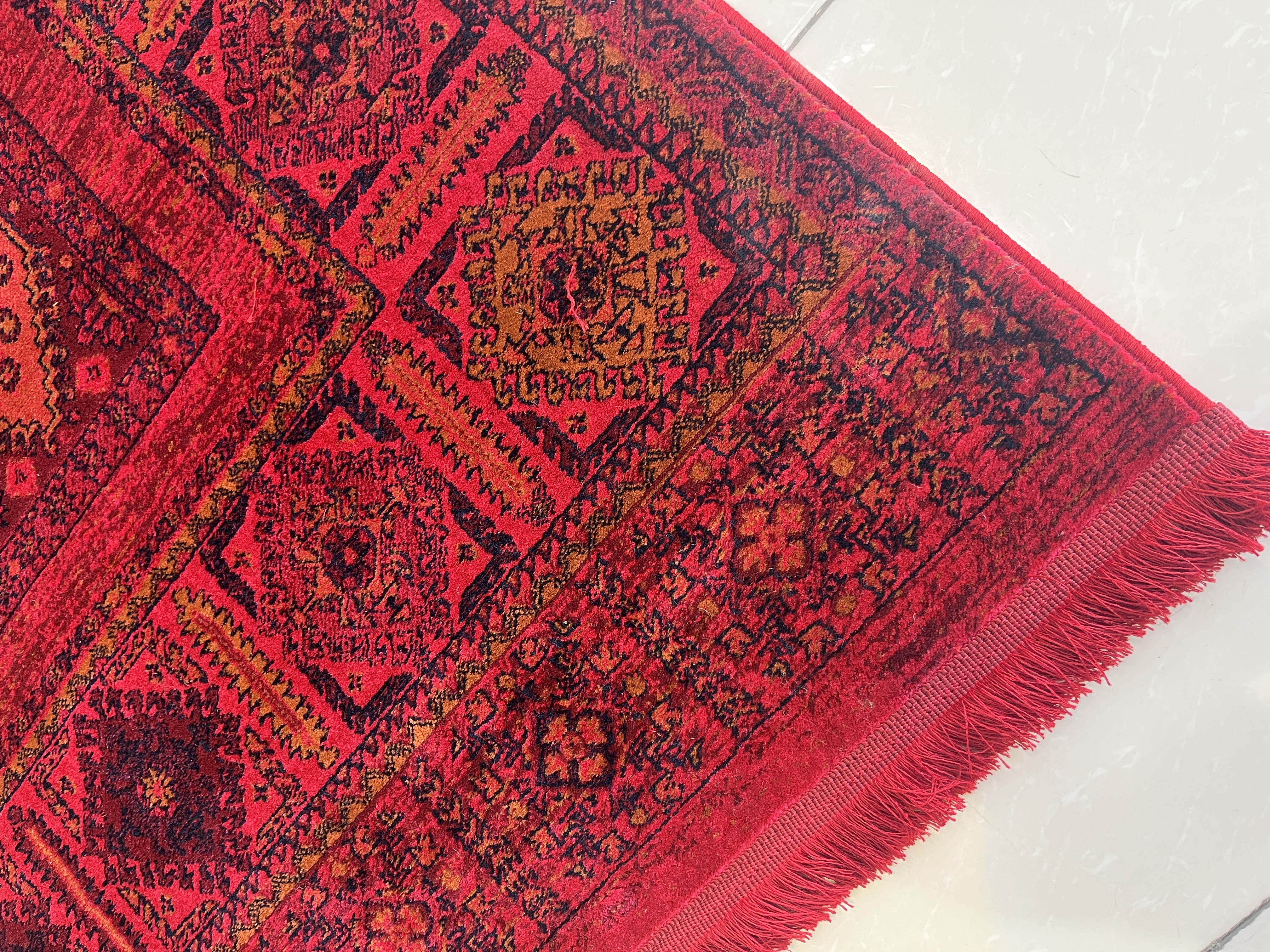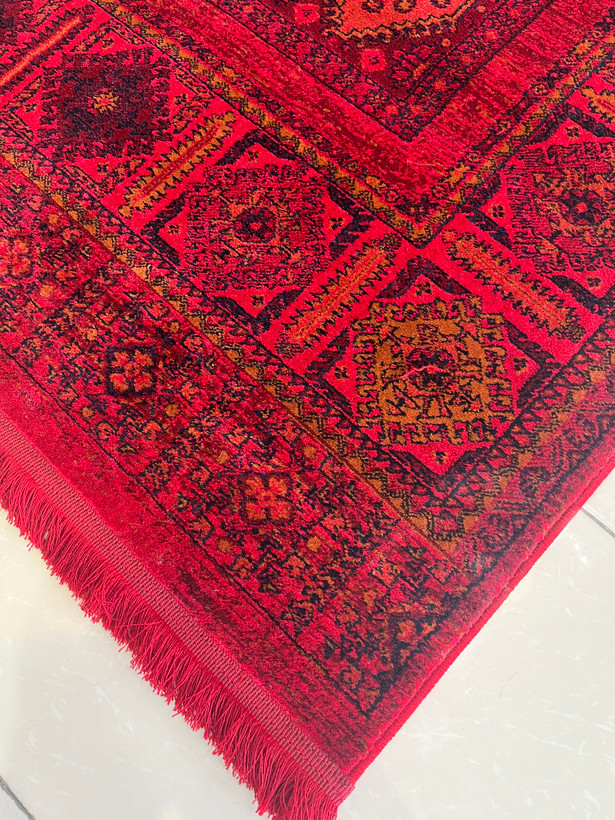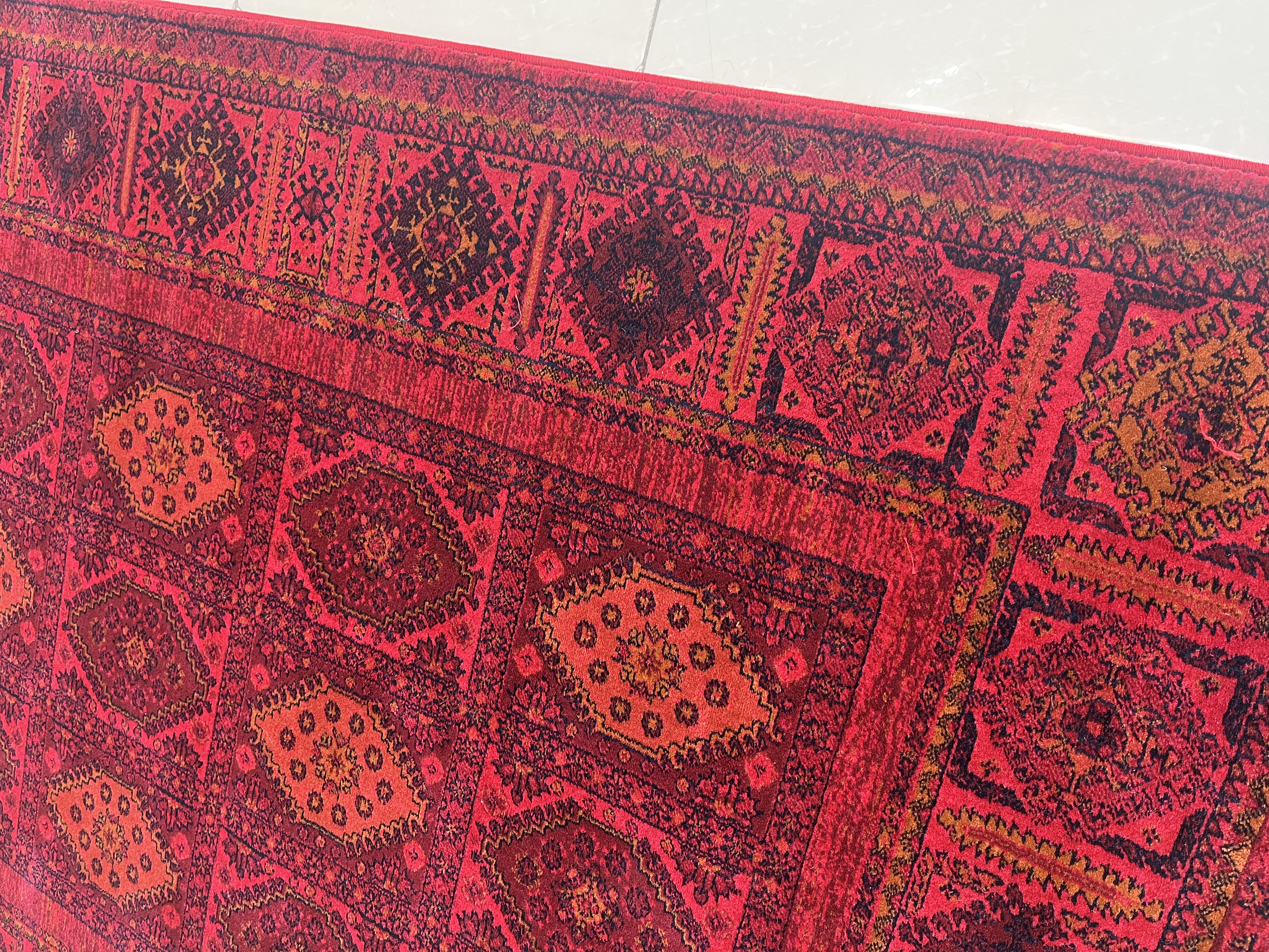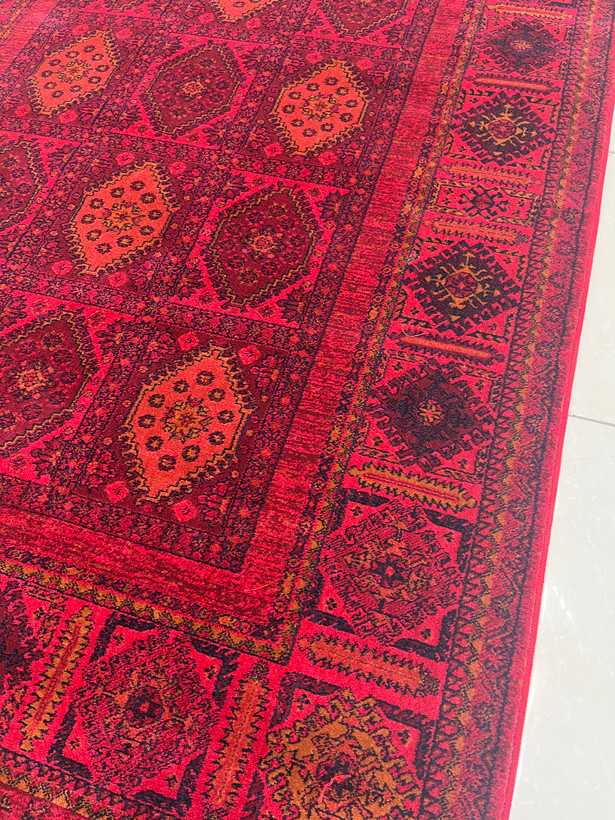 فرش ماشینی طرح خشتی زمینه لاکی قجری کد 4125