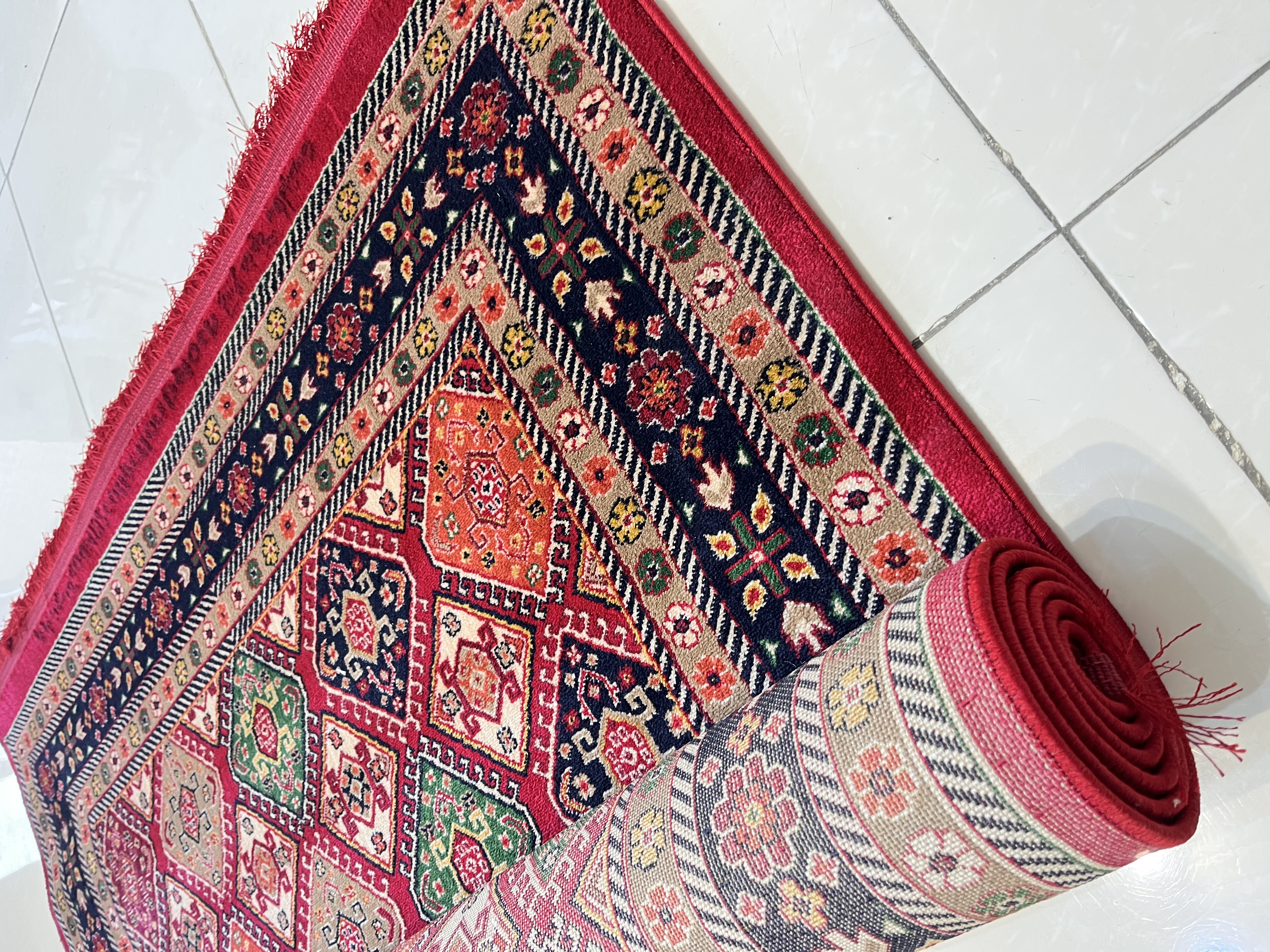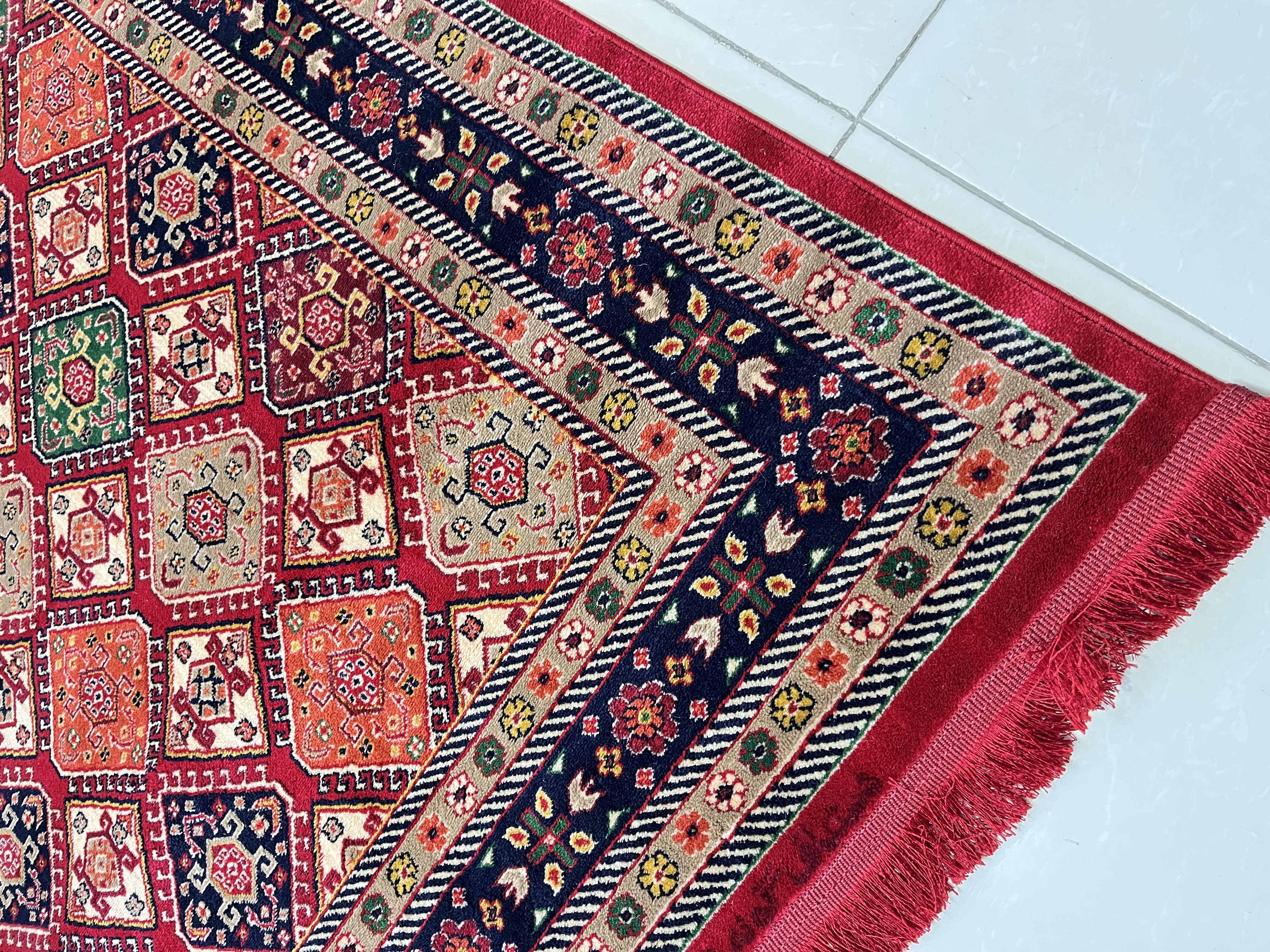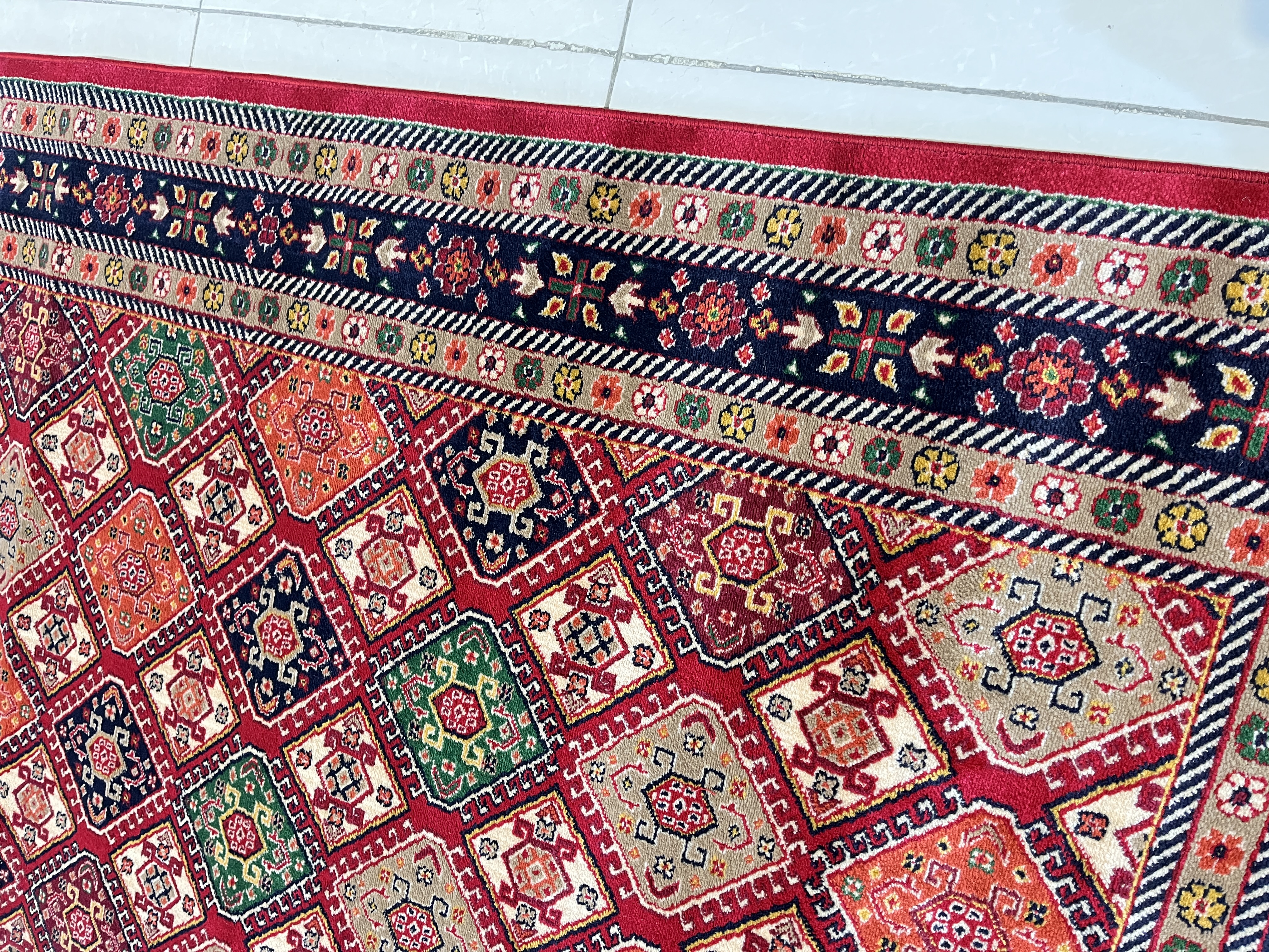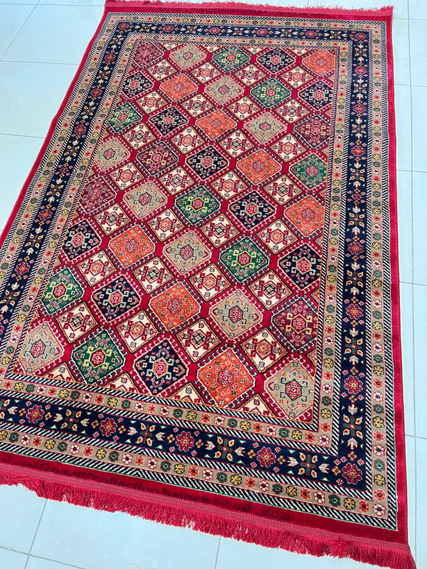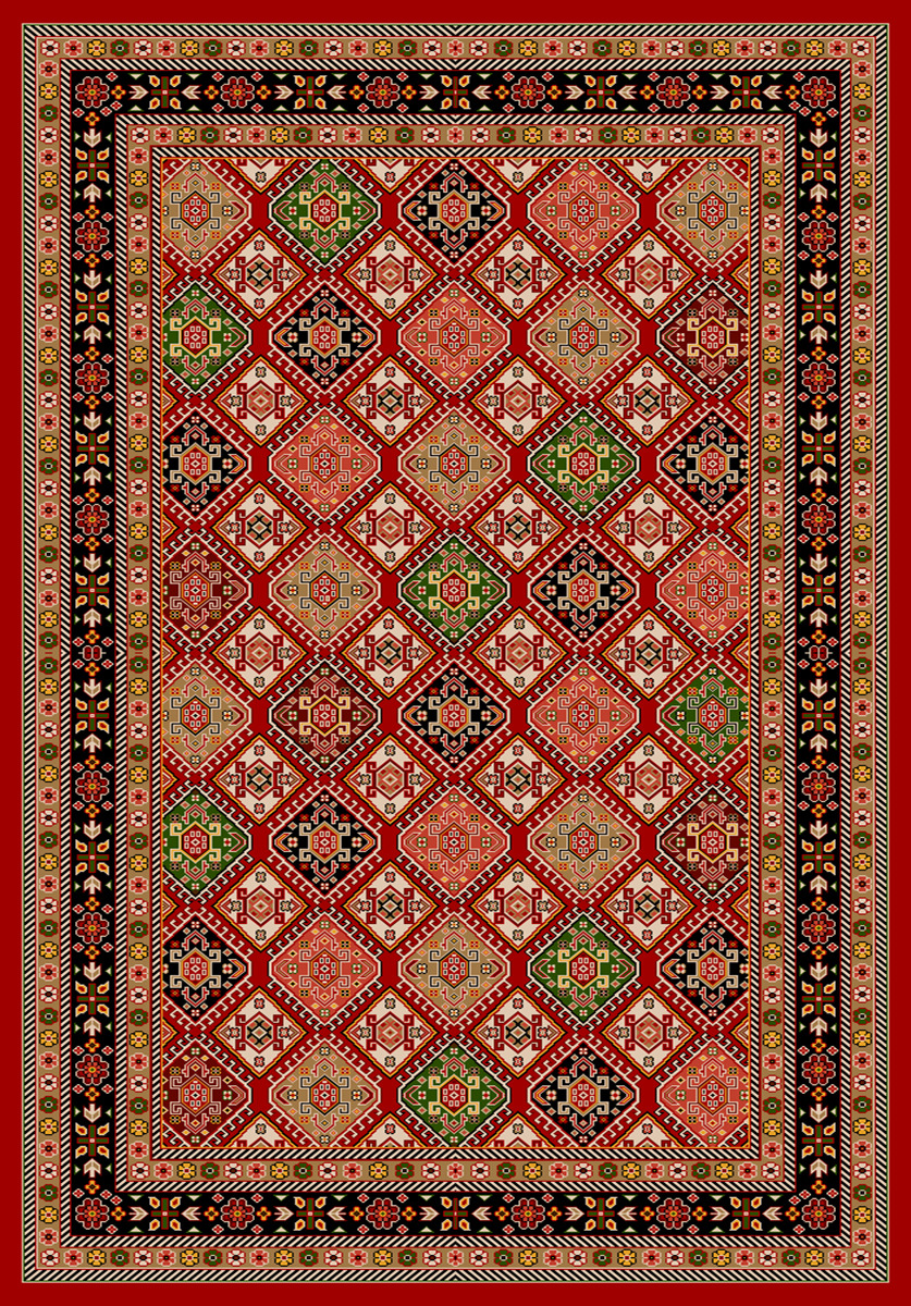 فرش طرح خشتی زمینه لاکی کد 4132