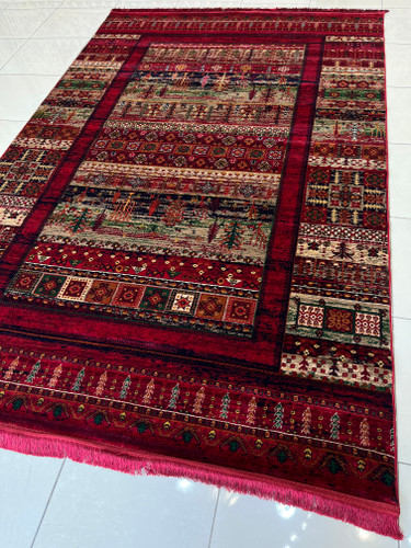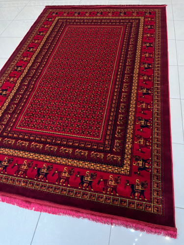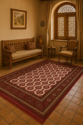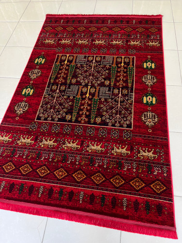 فرش طرح ترکمن زمینه زرشکی کد طرح 4102