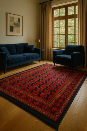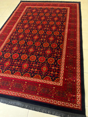 فرش 420 شانه طرح ترکمن زمینه سرمه ای کد طرح 4102