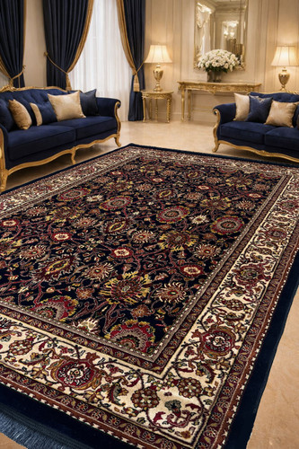 فرش ماشینی کاشان زمینه سرمه ای کد طرح 4110