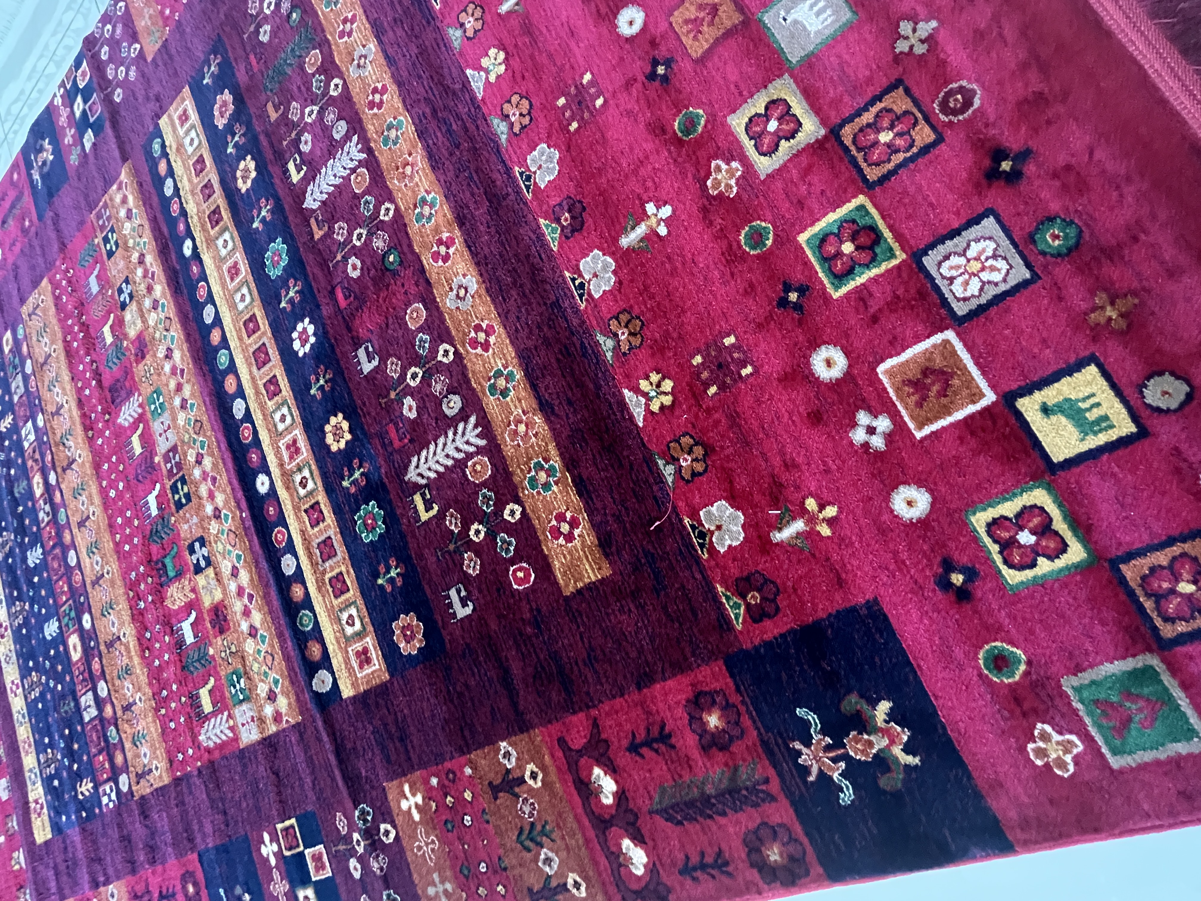 فرش گبه زمینه لاکی قجری سنتی کد طرح 4105