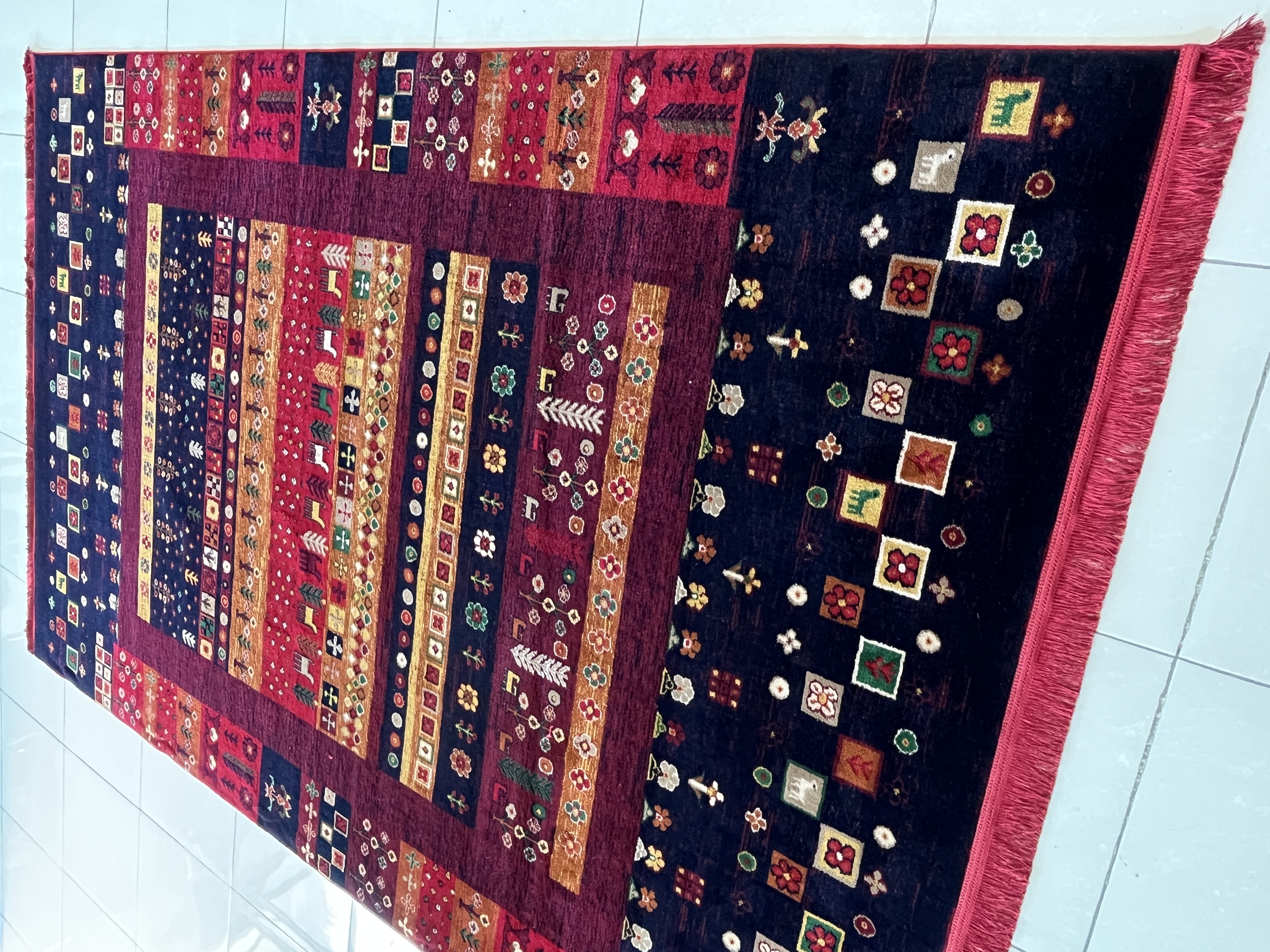 قالیچه گبه زمینه سرمه ای کد نقشه 4106