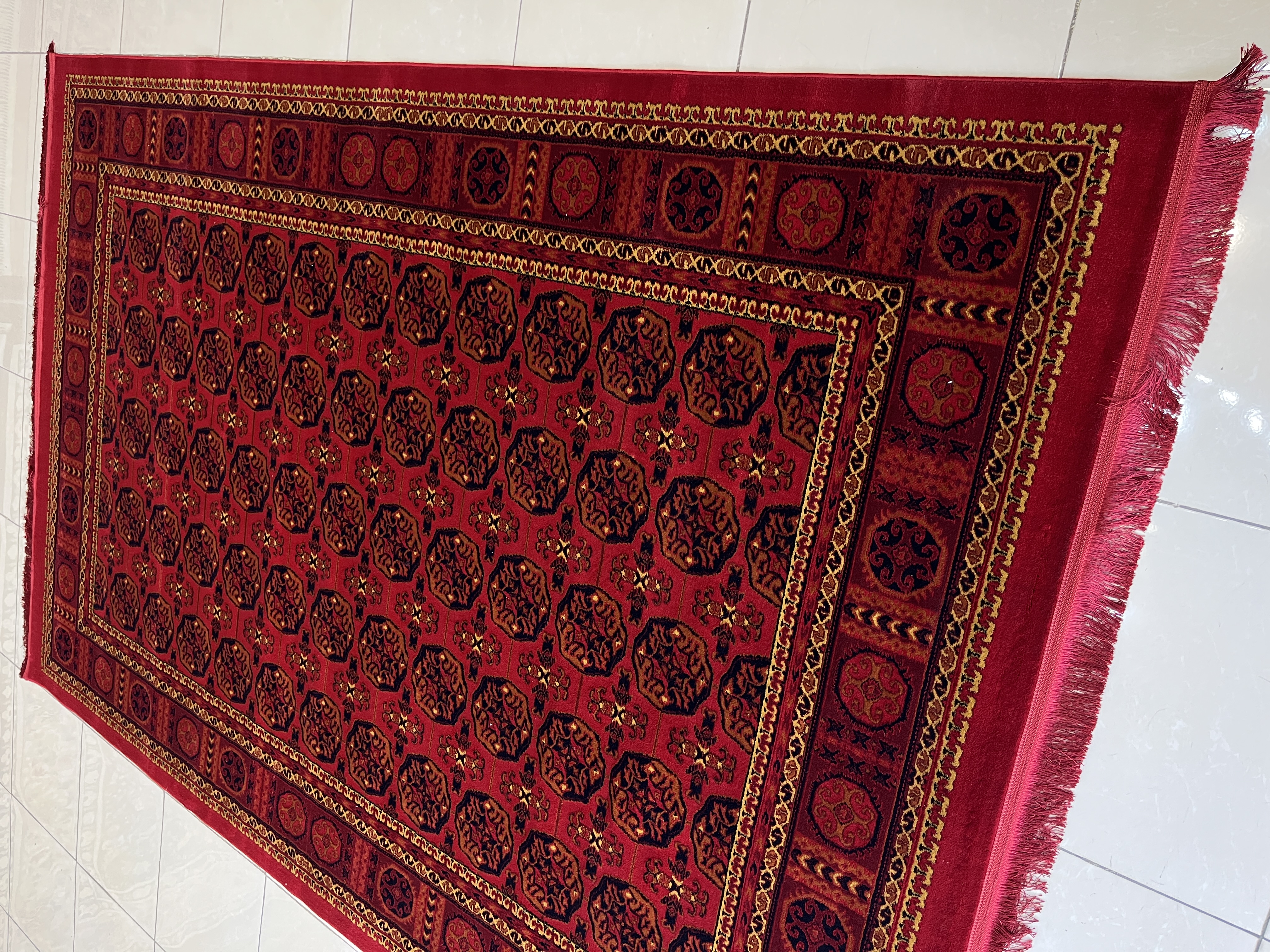 فرش طرح ترکمن زمینه زرشکی کد طرح 4102