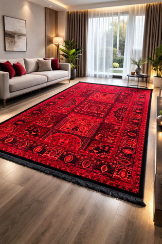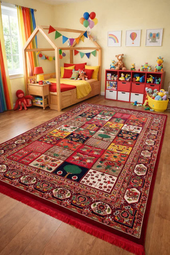 فرش طرح قجری ویژه رنگ لاکی و سبز کد طرح 4122