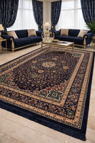 فرش زمینه سرمه ای جنس بی سی اف کد 1021