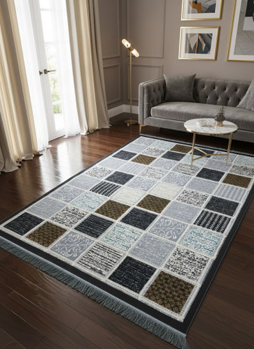 فرش ماشینی 420 شانه زمینه نقره ای طرح مدرن و مینیمال کد 1013
