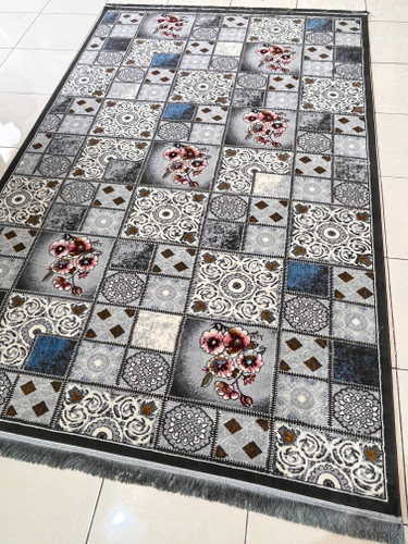 فرش 420 شانه طرح خشتی زمینه دودی کد1001