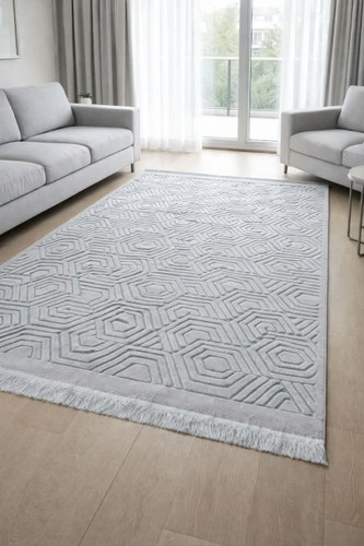 فرش ماشینی طرح برجسته زمینه نقره ای کد 1014