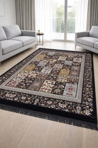 فرش ماشینی زمینه سرمه ای طرح سرو کد 4120