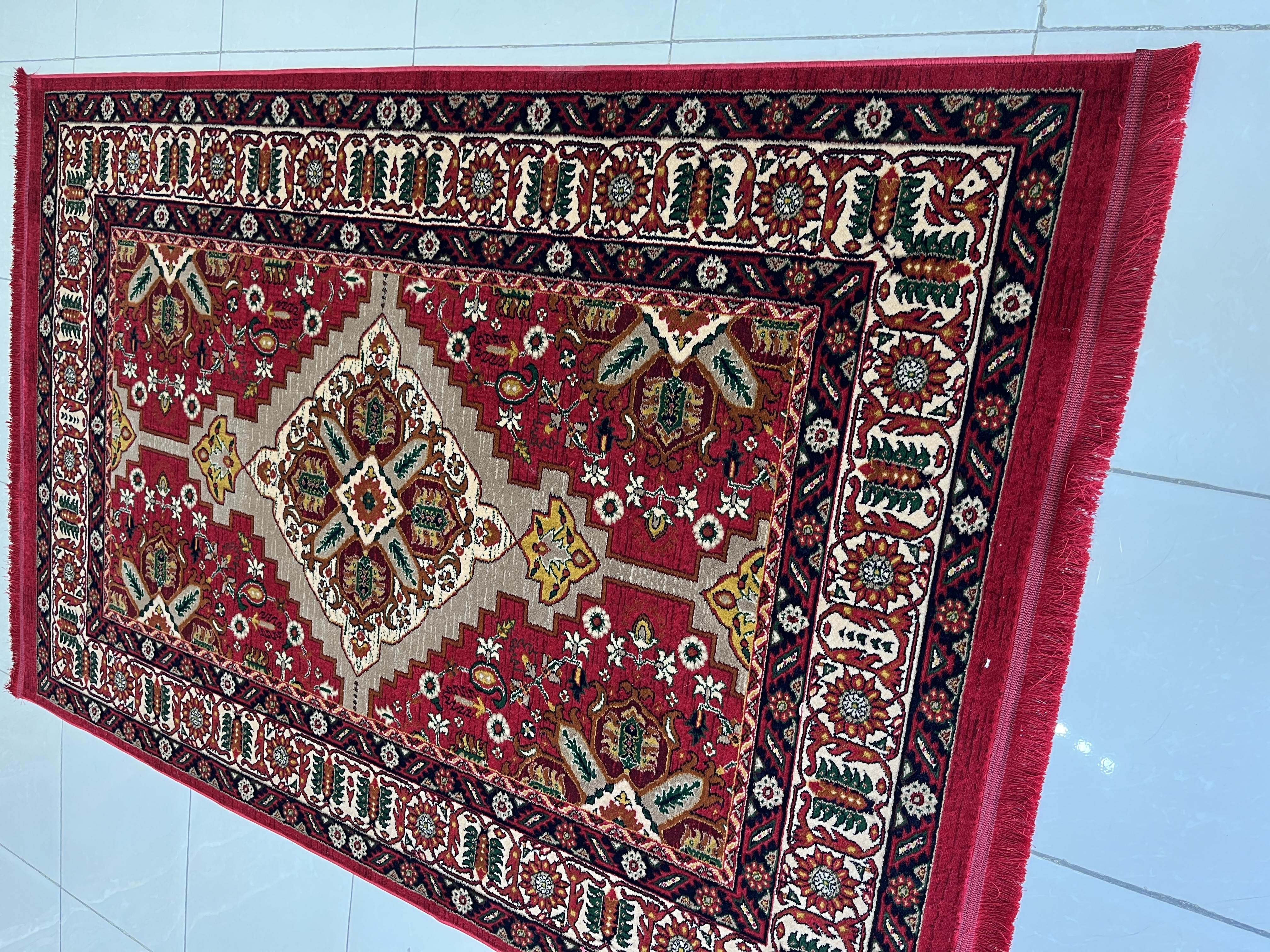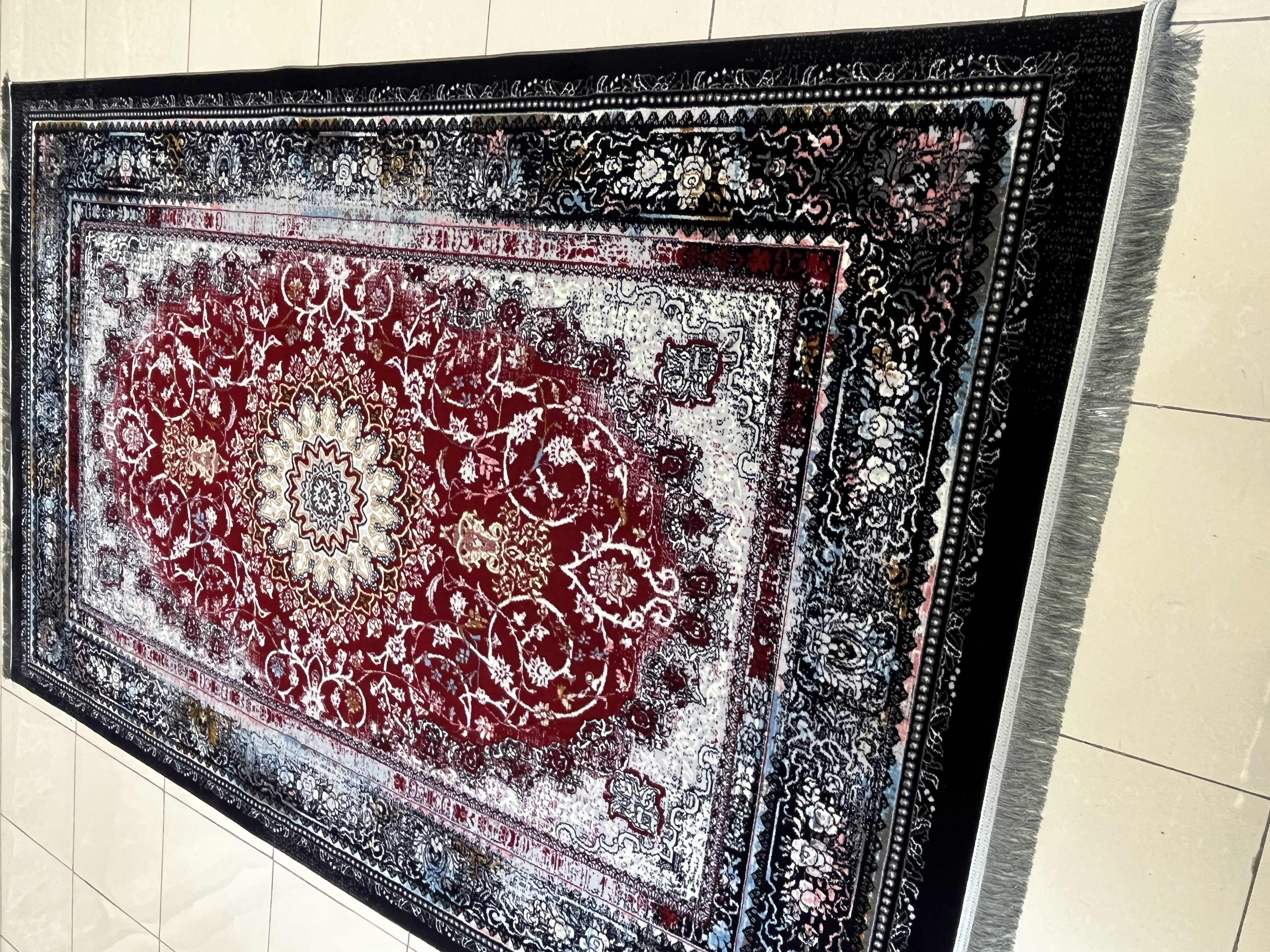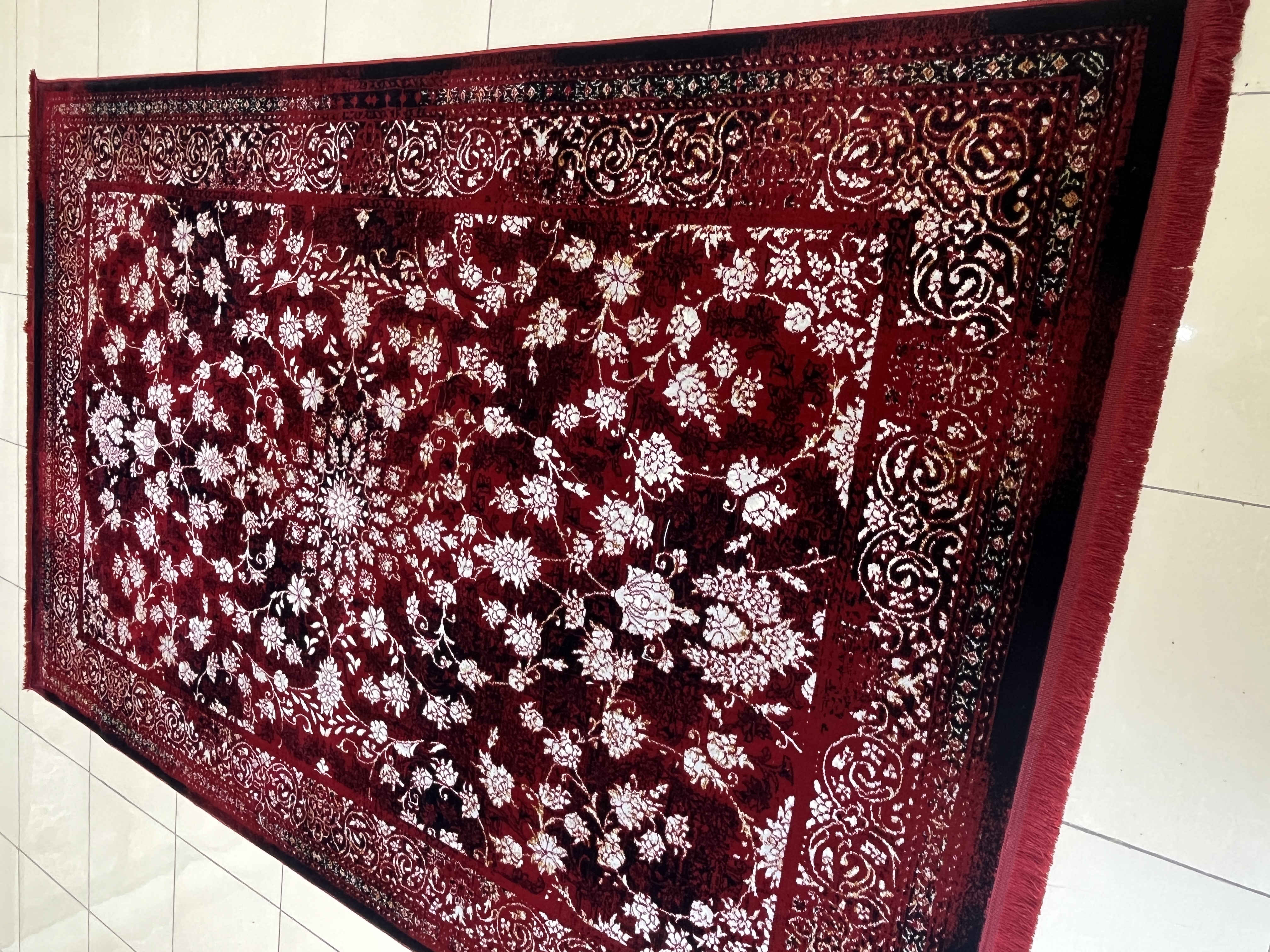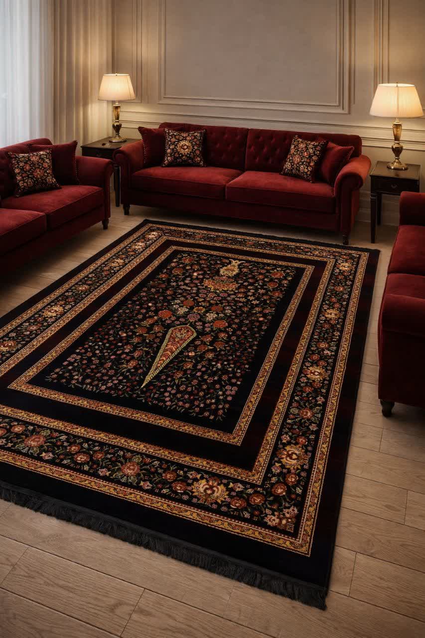 فرش ماشینی زمینه لاکی قجری کد طرح 4141