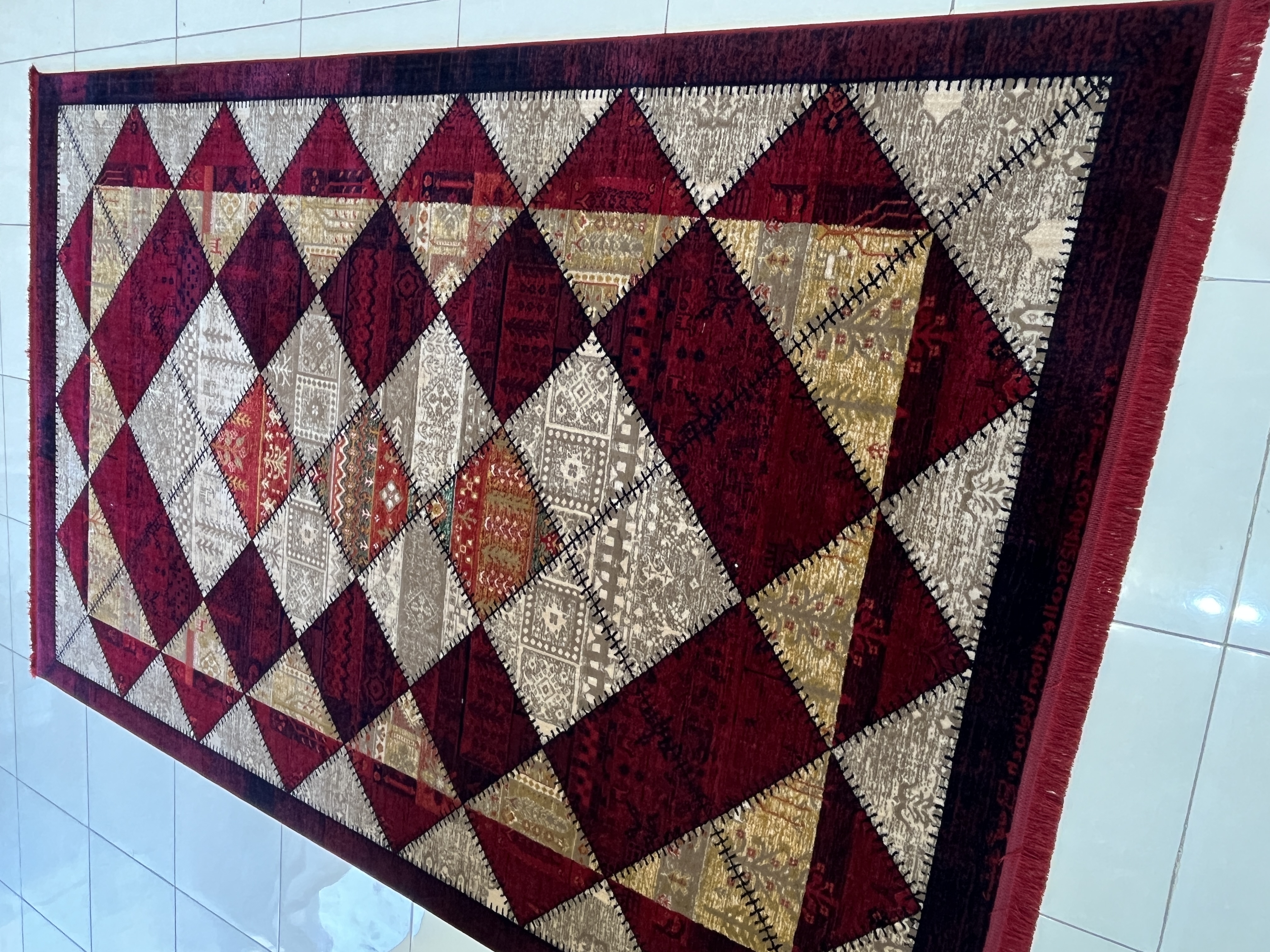 فرش 420 شانه طرح خشتی زمینه لاکی کد 1024