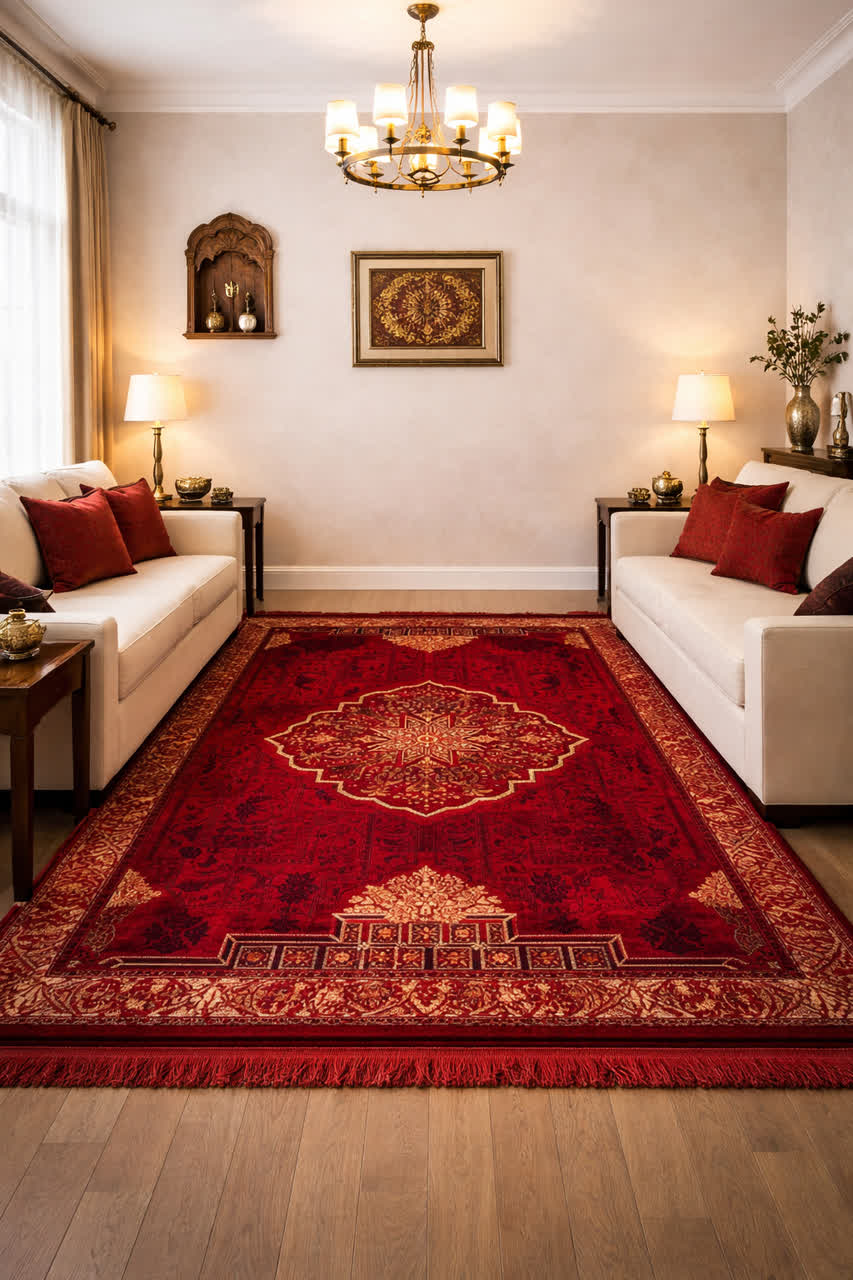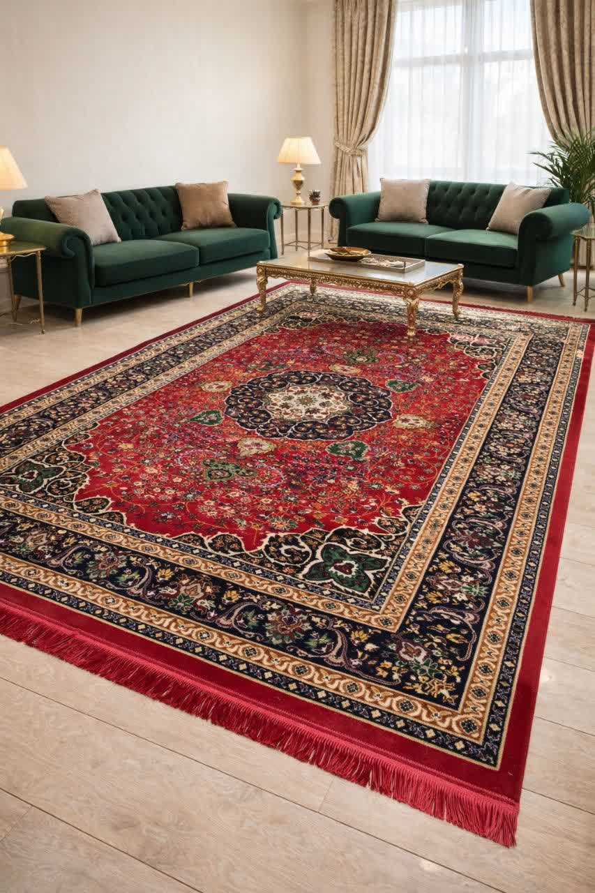 فرش ماشینی 420 شانه زمینه لاکی کد 1012