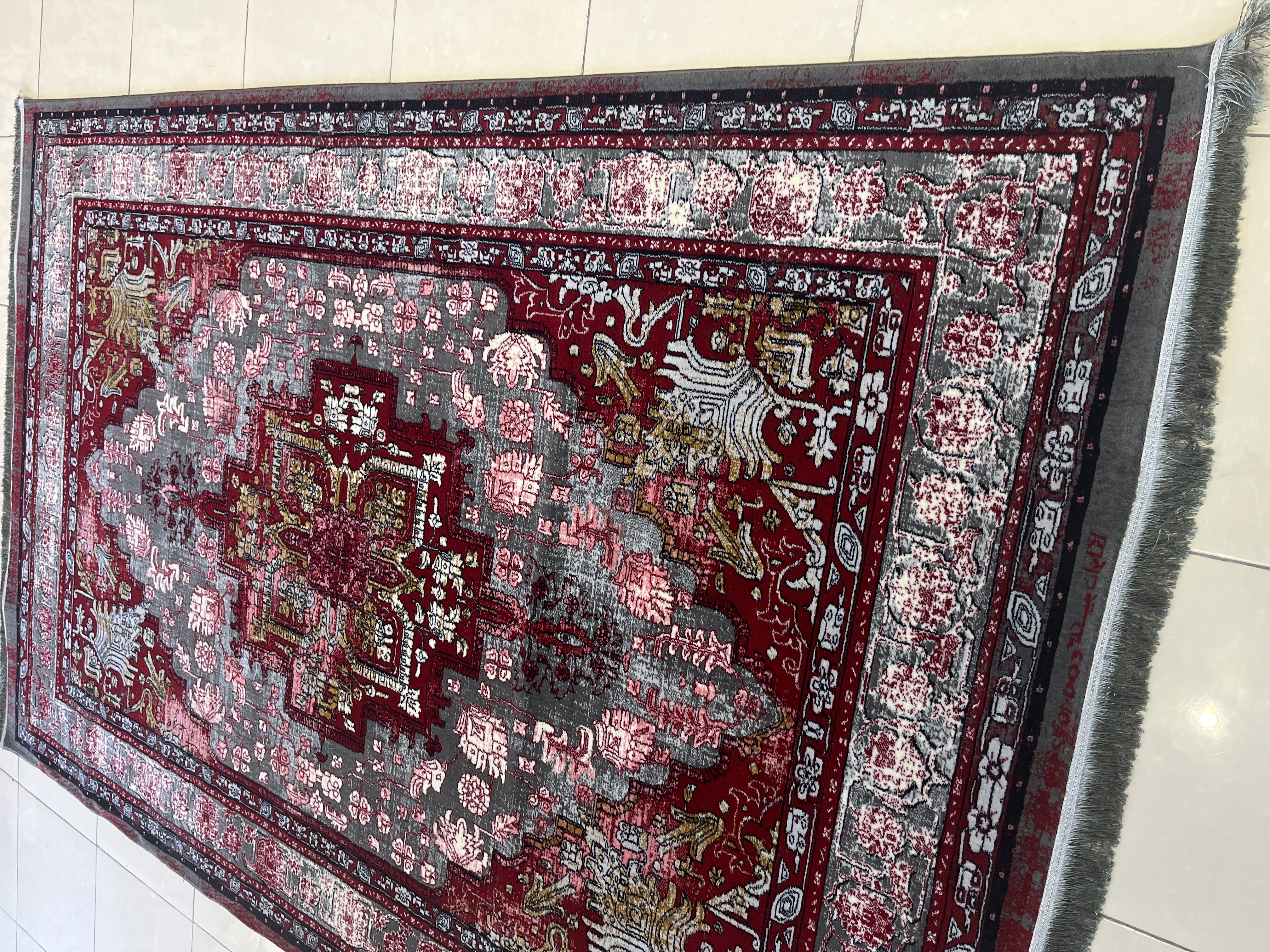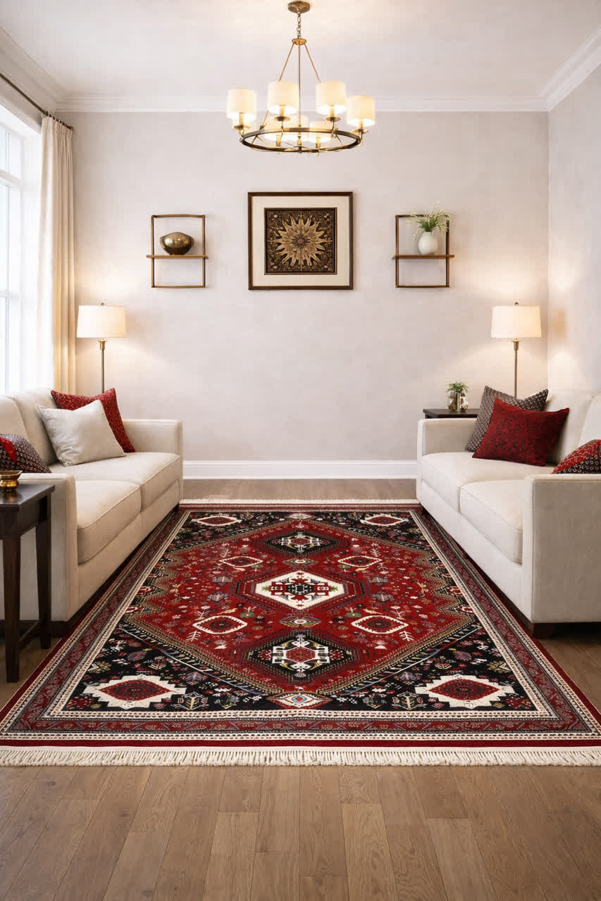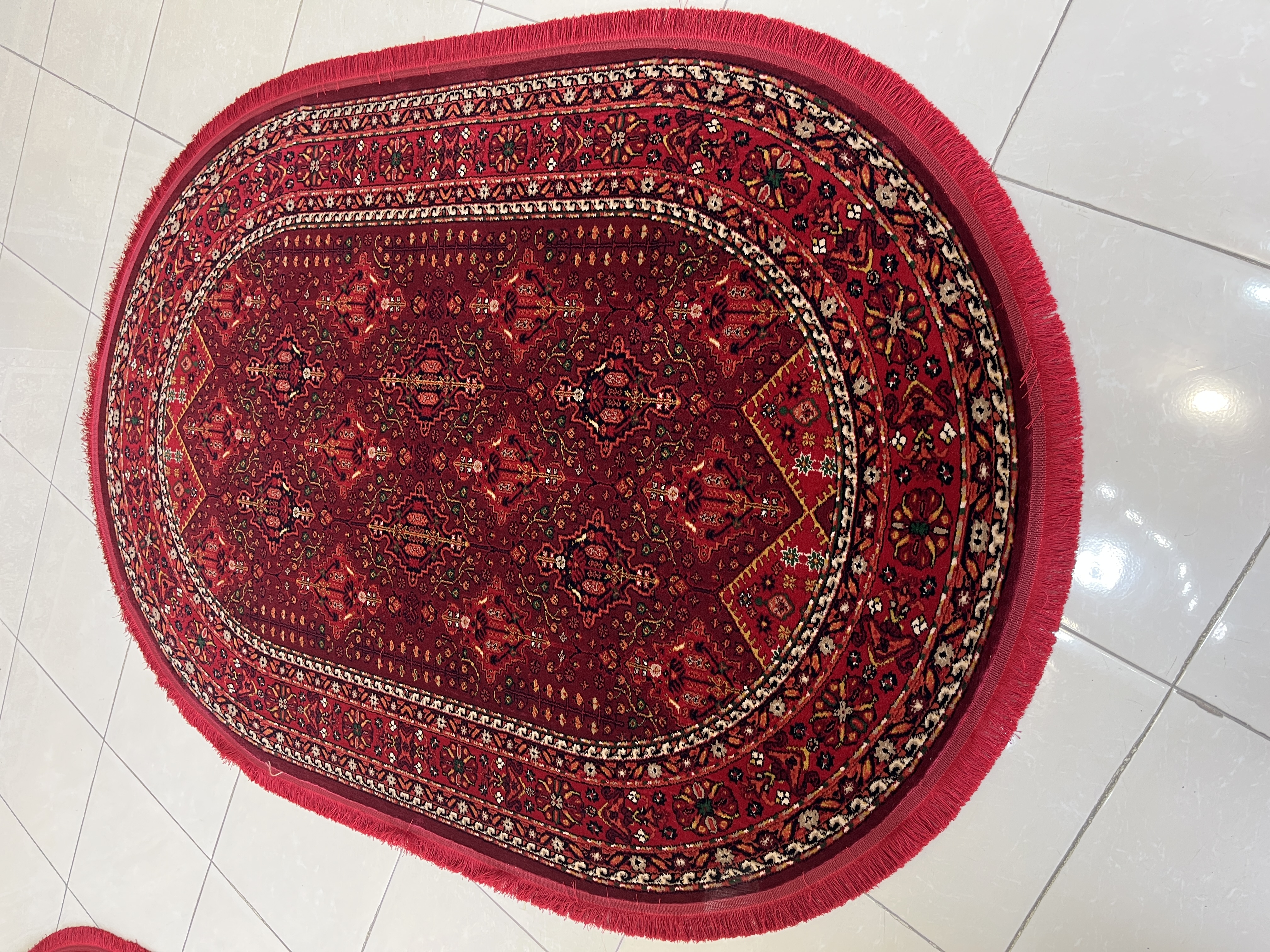قالیچه بیضی زمینه زرشکی و لاکی کد 4104