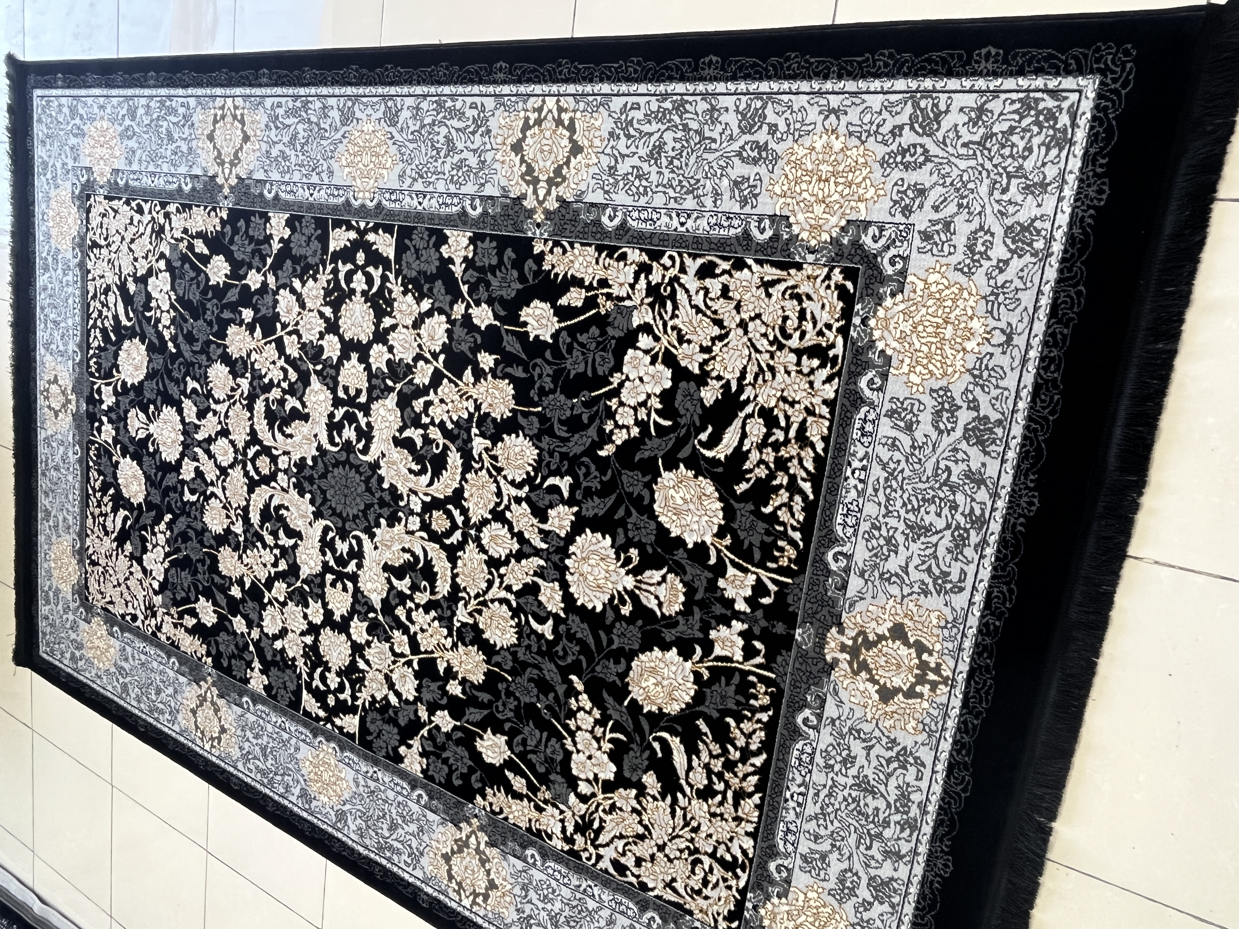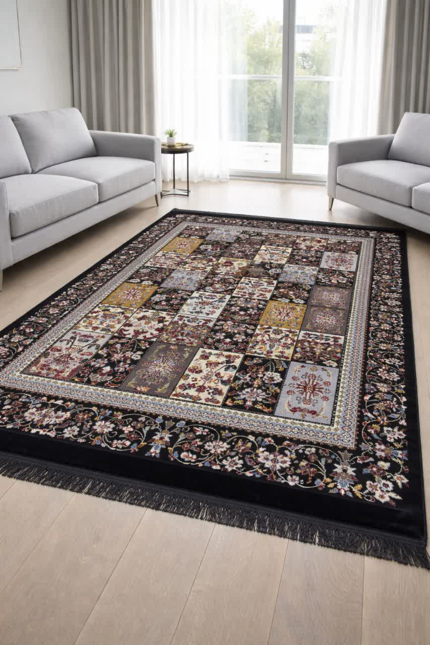 فرش ماشینی زمینه سرمه ای طرح سرو کد 4120