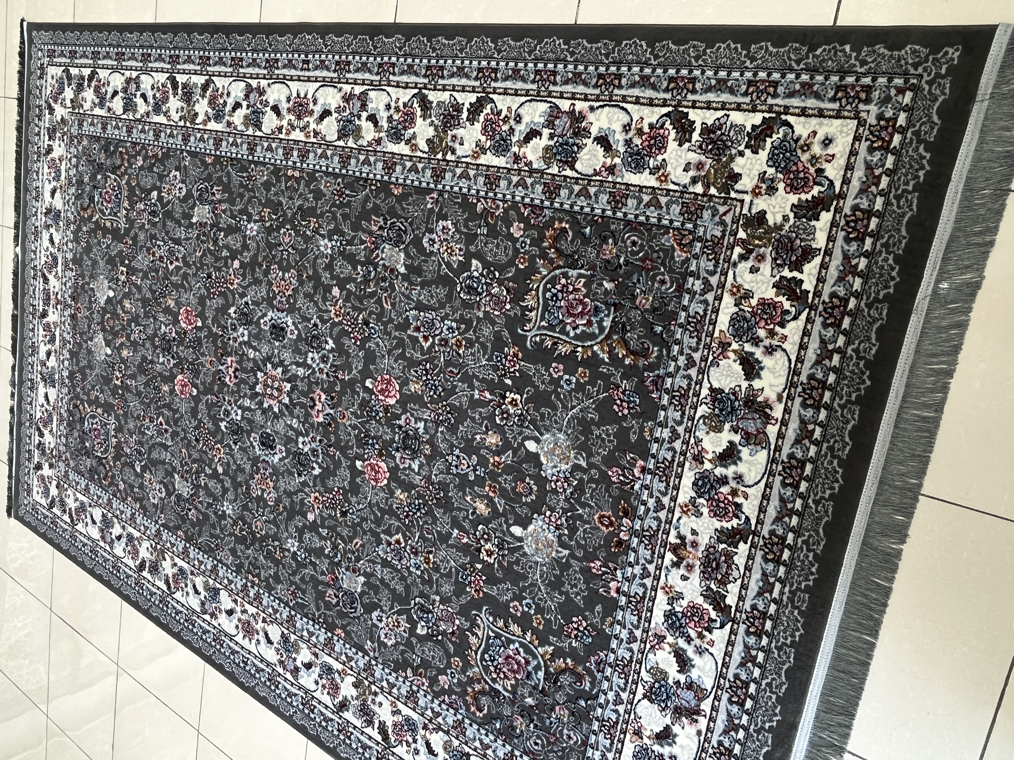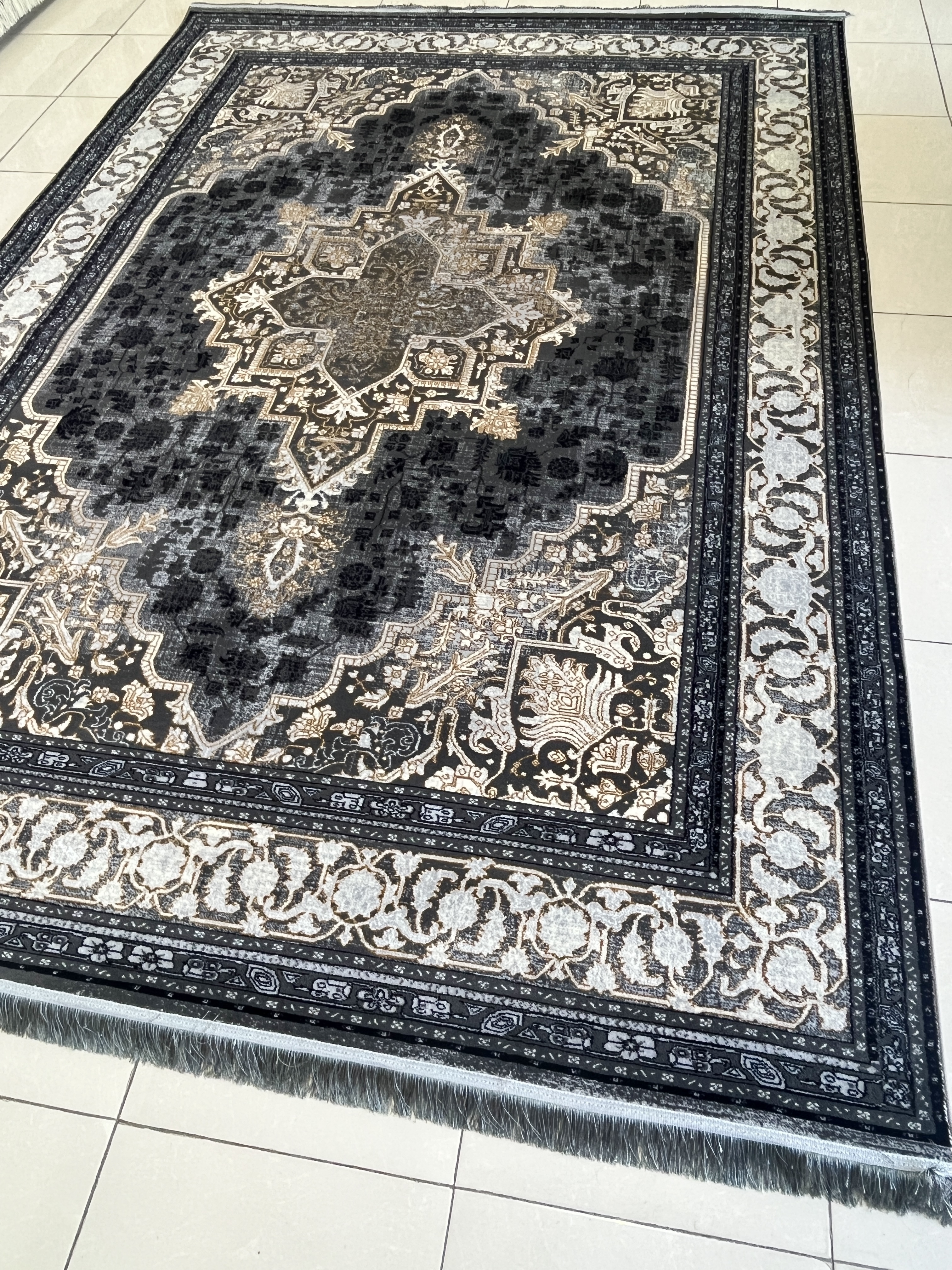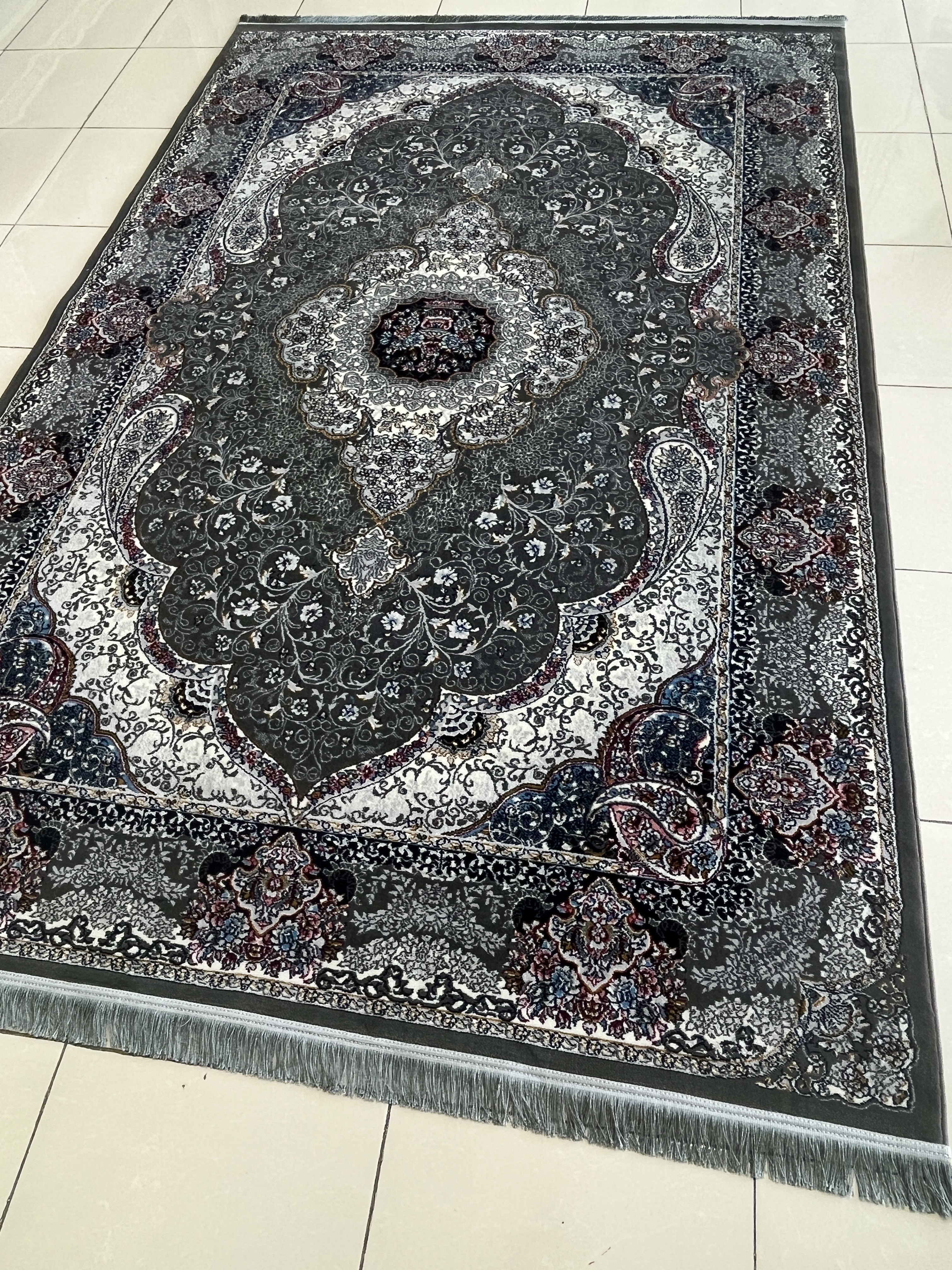فرش ماشینی برجسته زمینه نقره ای جنس بی سی اف کد 1017